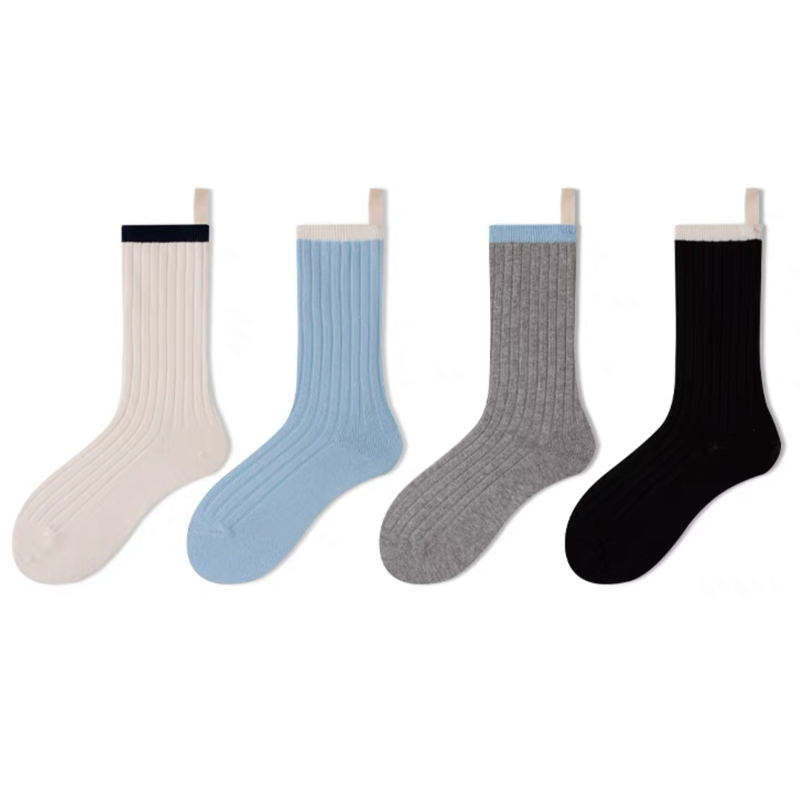 【4双装】朝暮栖止女士后跟布标多巴胺色系小清新拼色透气吸汗中筒袜子