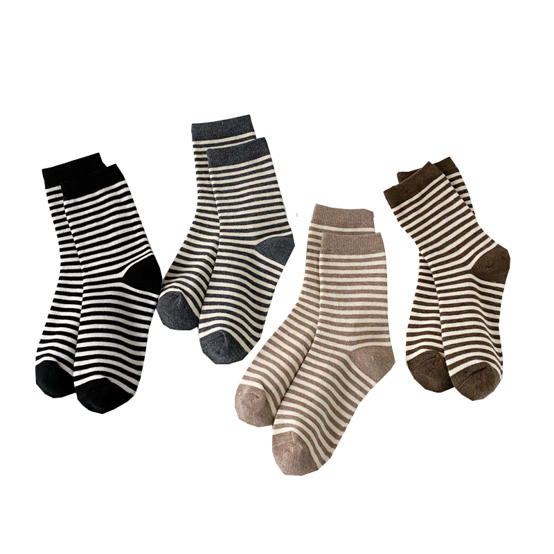【4双装】朝暮栖止女士日系条纹素色透气吸汗中筒棉袜子