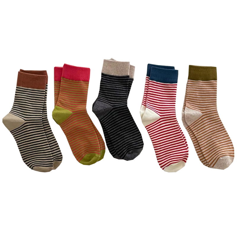 【20双装更优惠】朝暮栖止女士罗口拼色条纹中筒袜简约透气吸汗美拉德系袜子