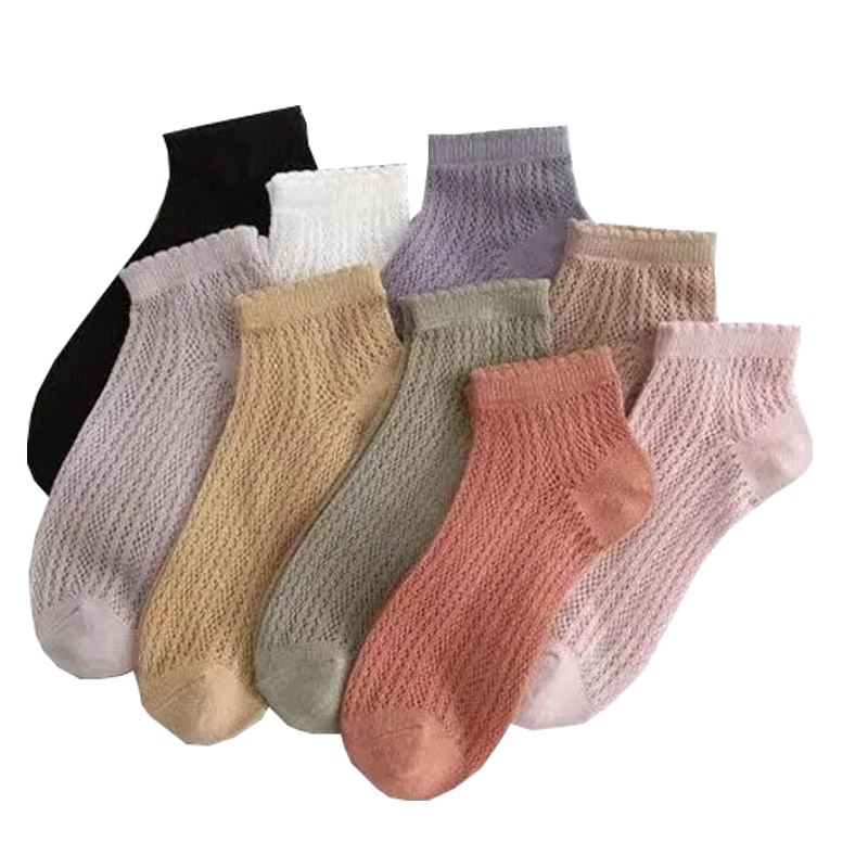 【5双装】朝暮栖止女士纯色网眼透气吸汗款短筒棉袜子