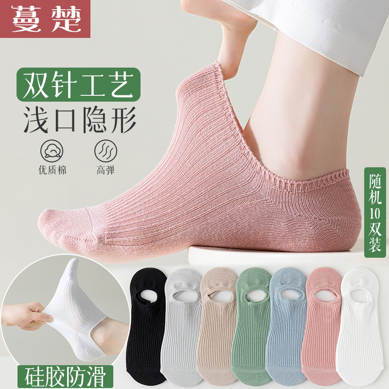 【特价秒杀】10双装蔓楚女士双针舒适隐形棉袜夏天透气短袜船袜硅胶防滑休闲袜子