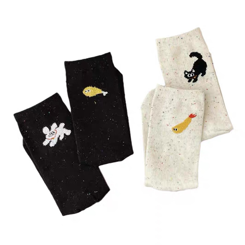 【4双装】朝暮栖止女士点子纱卡通中筒袜不规则图案透气吸汗棉袜子