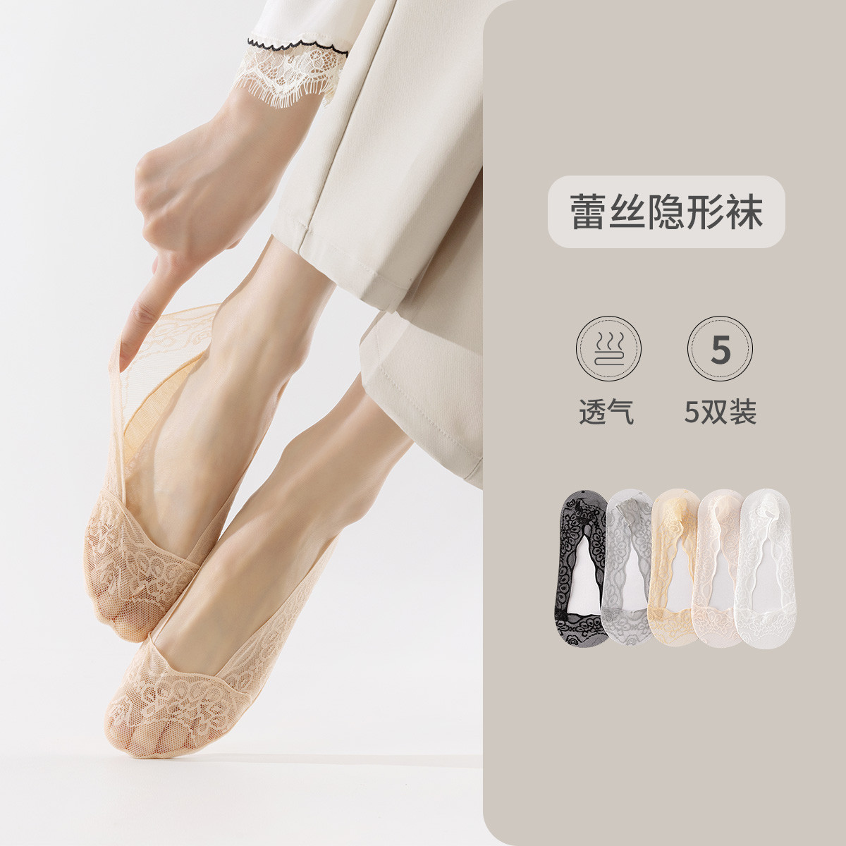 【透气防滑】蕾丝隐形袜5双装春夏款高跟鞋薄款浅口船袜女士 761867