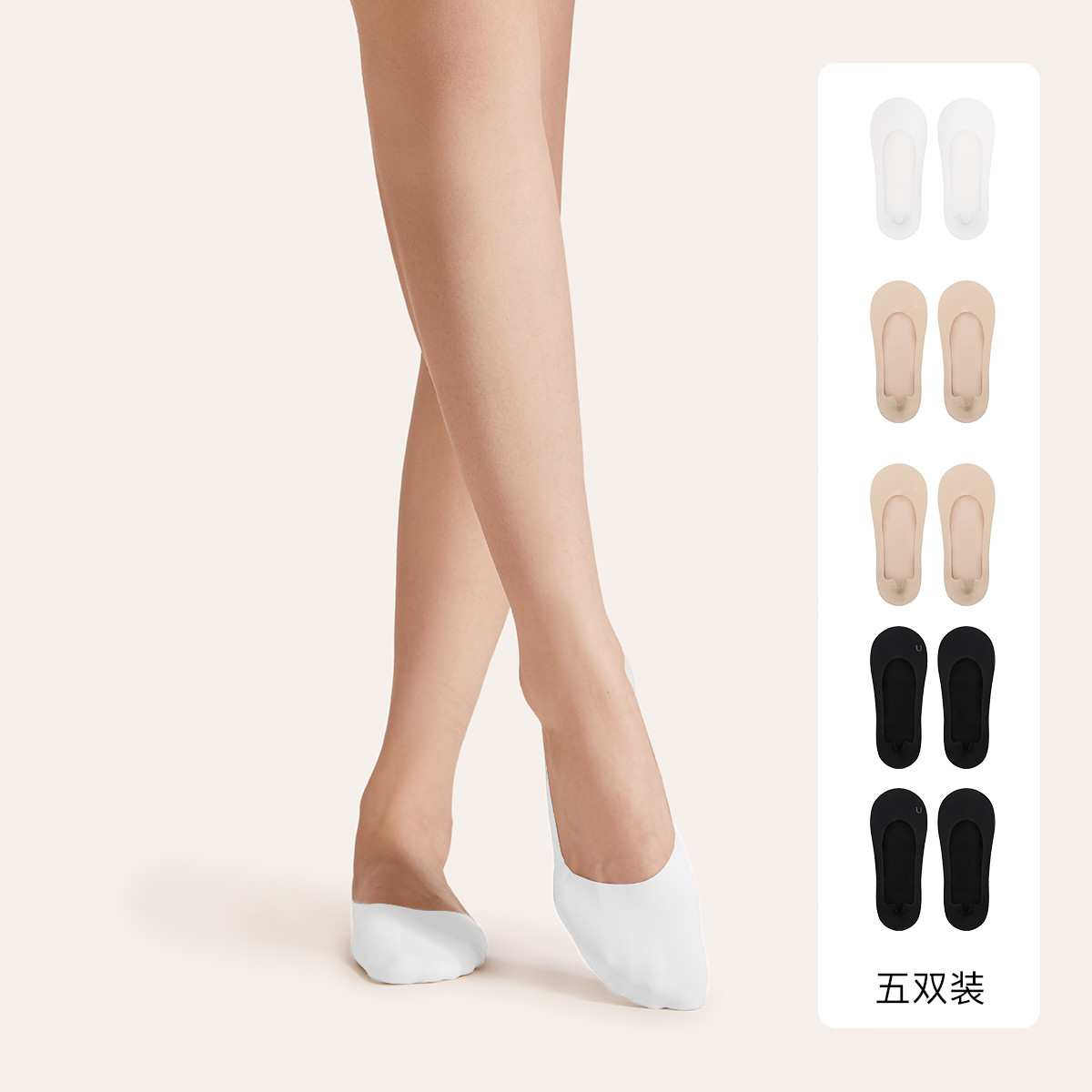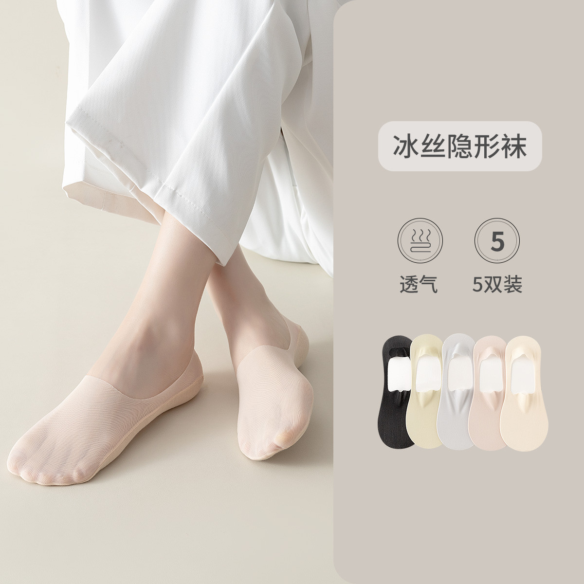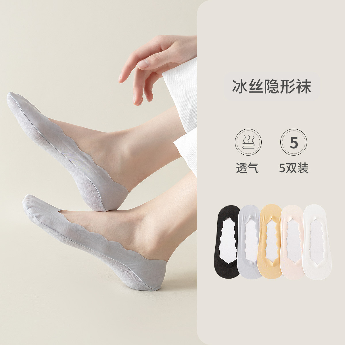 【透气冰丝隐形袜】5双装春夏款轻薄舒适船袜浅口防滑女士袜子 770059