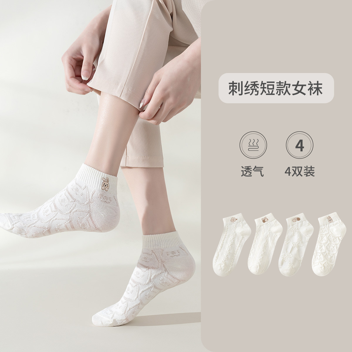 【刺绣短款女袜】日系可爱4双装春季款百搭学院透气短袜ins 760203