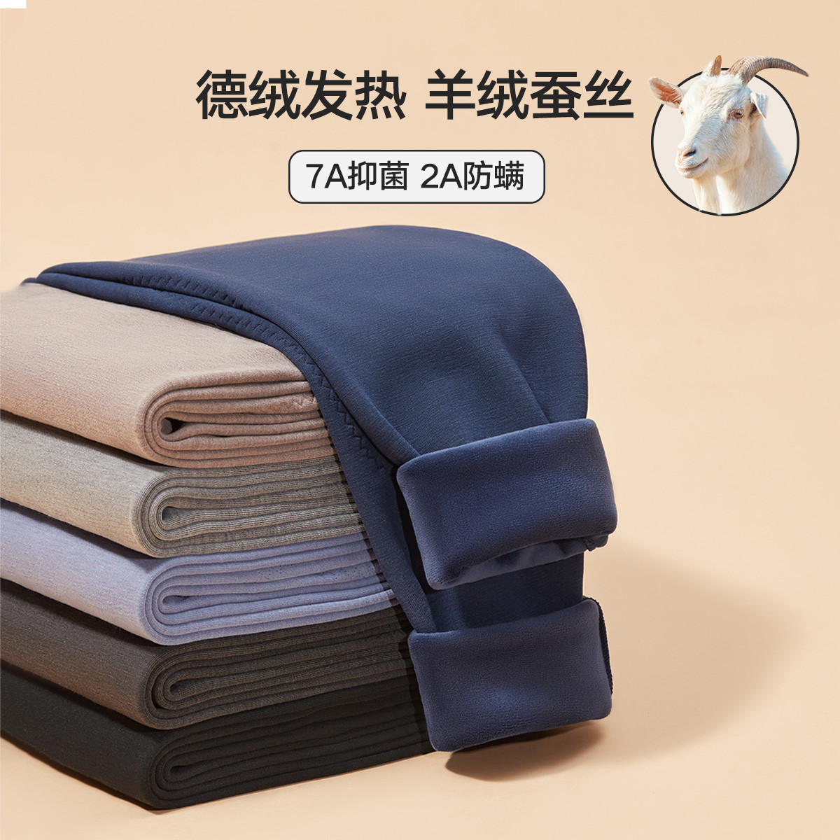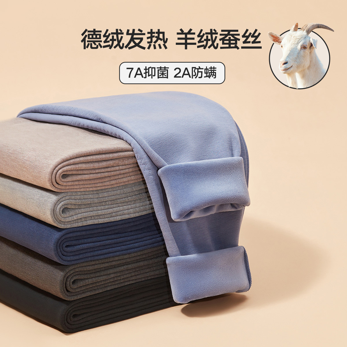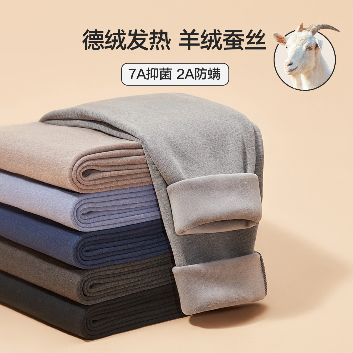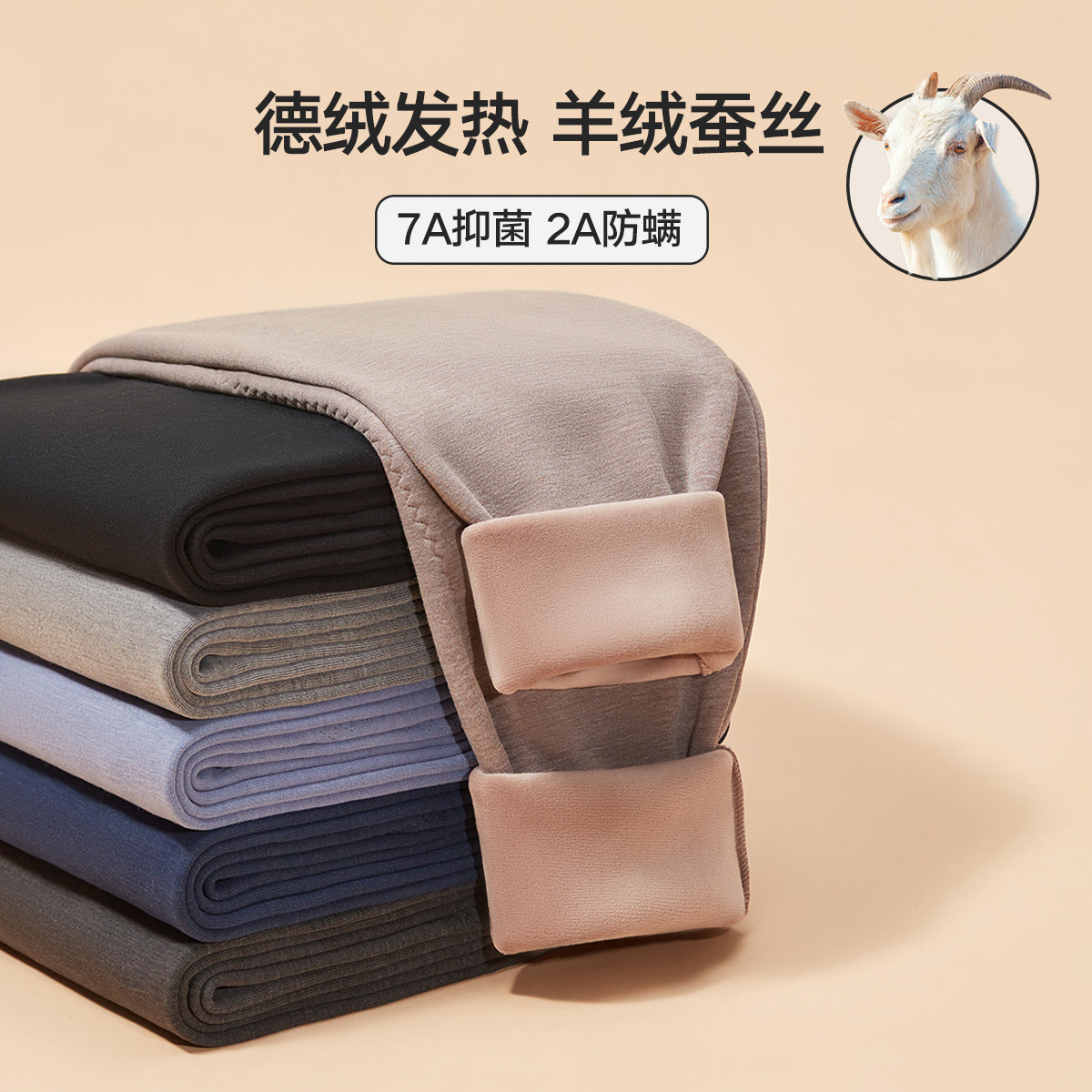 【德绒发热 含羊绒蚕丝】秋冬男士秋裤加绒加厚打底保暖裤男单件 693850