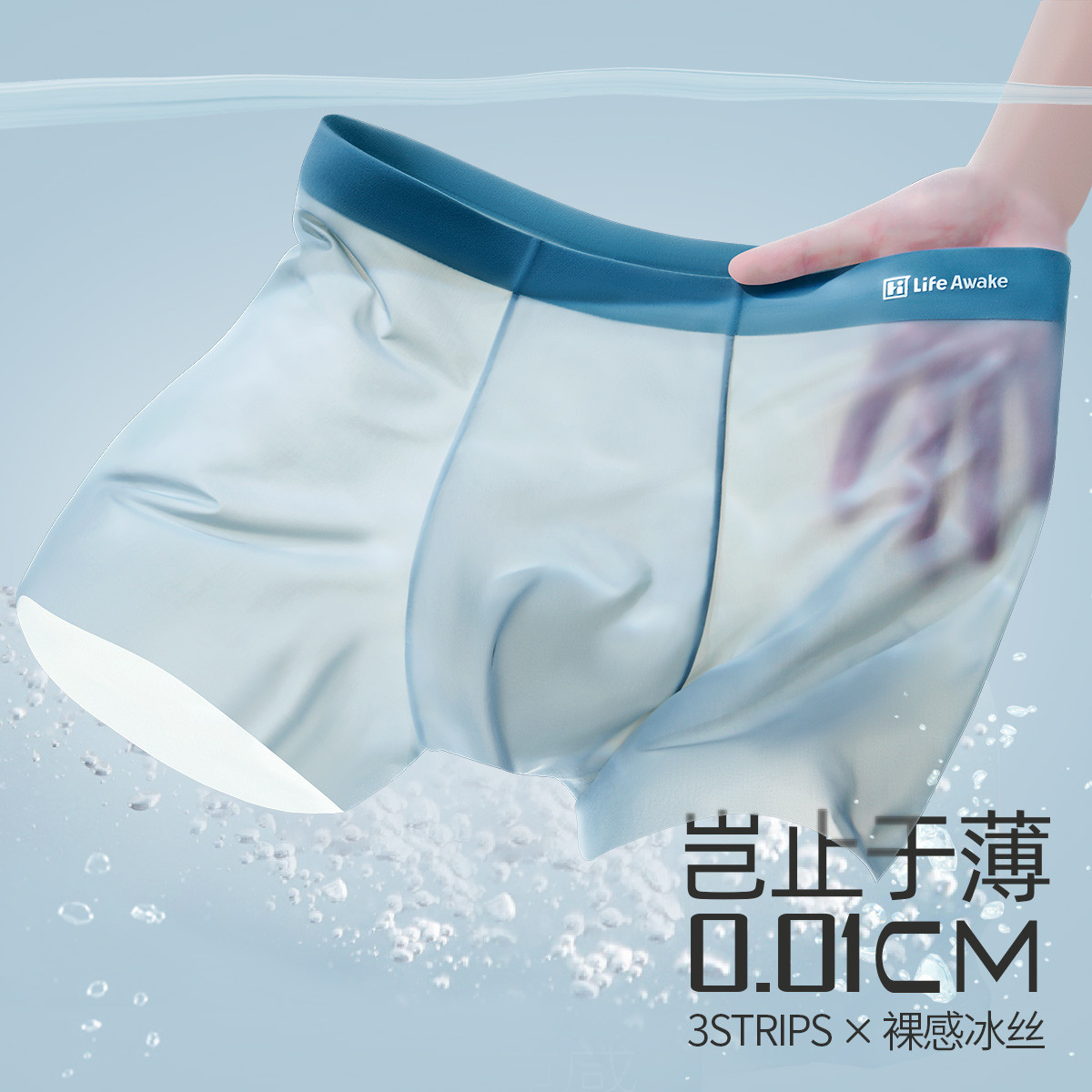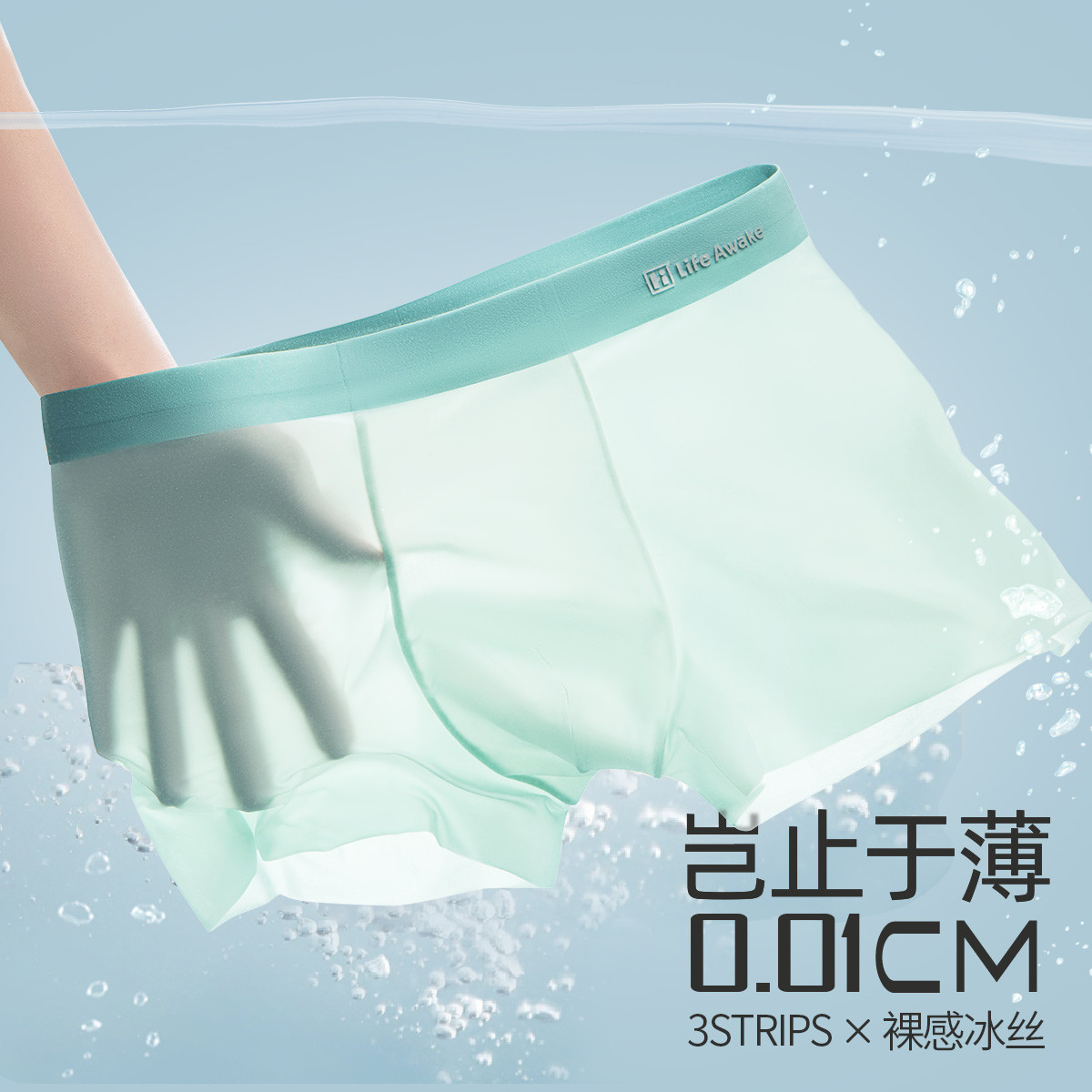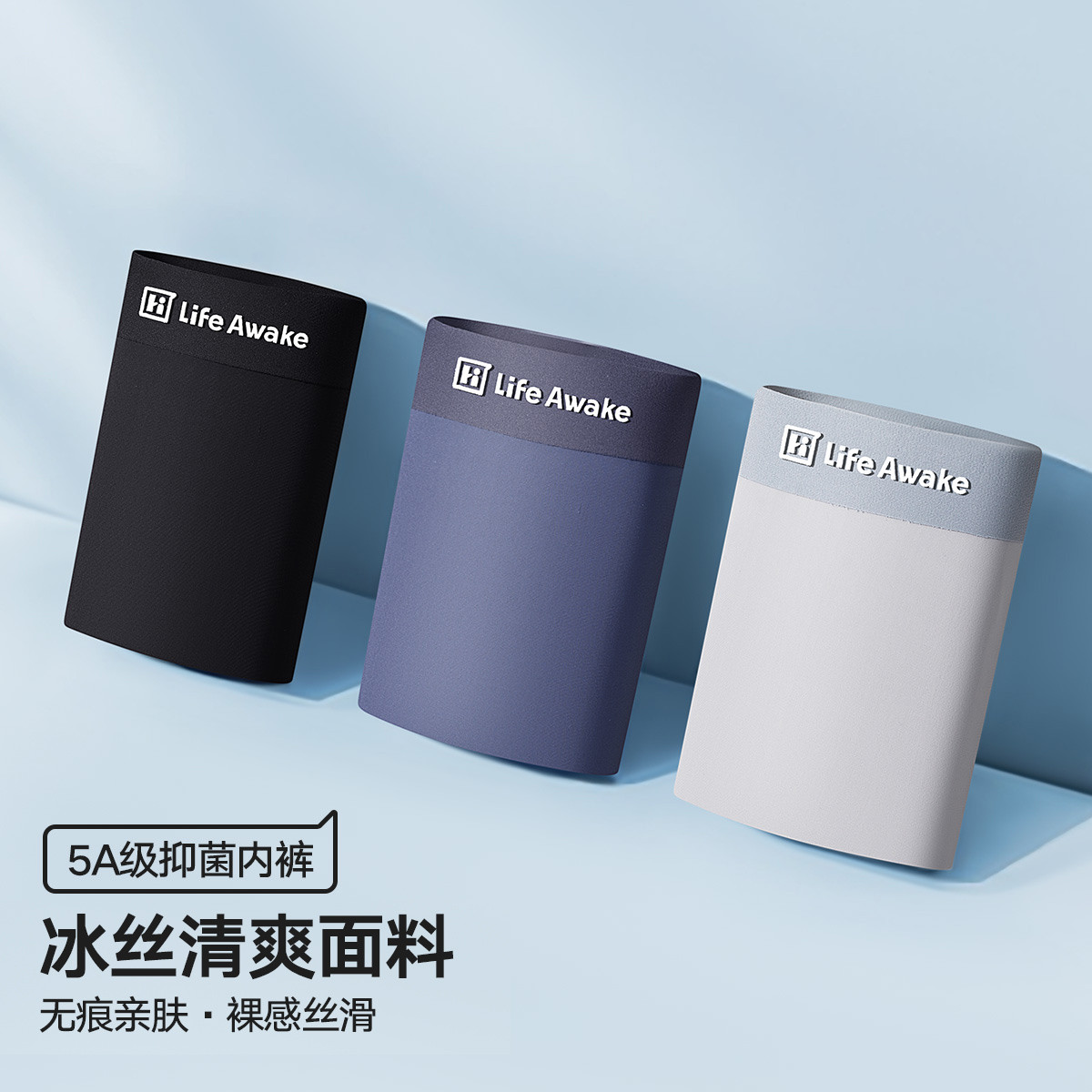 【冰丝无痕 裸感透气】3条装男士内裤平角夏季薄款抑菌四角短裤 155034