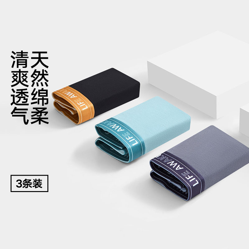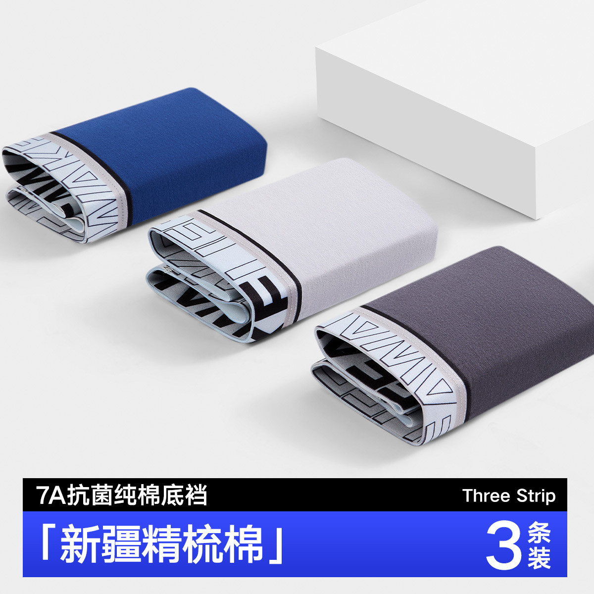 【7A抑菌 100%纯棉档】3条装男士平角内裤透气四角短裤衩 547418