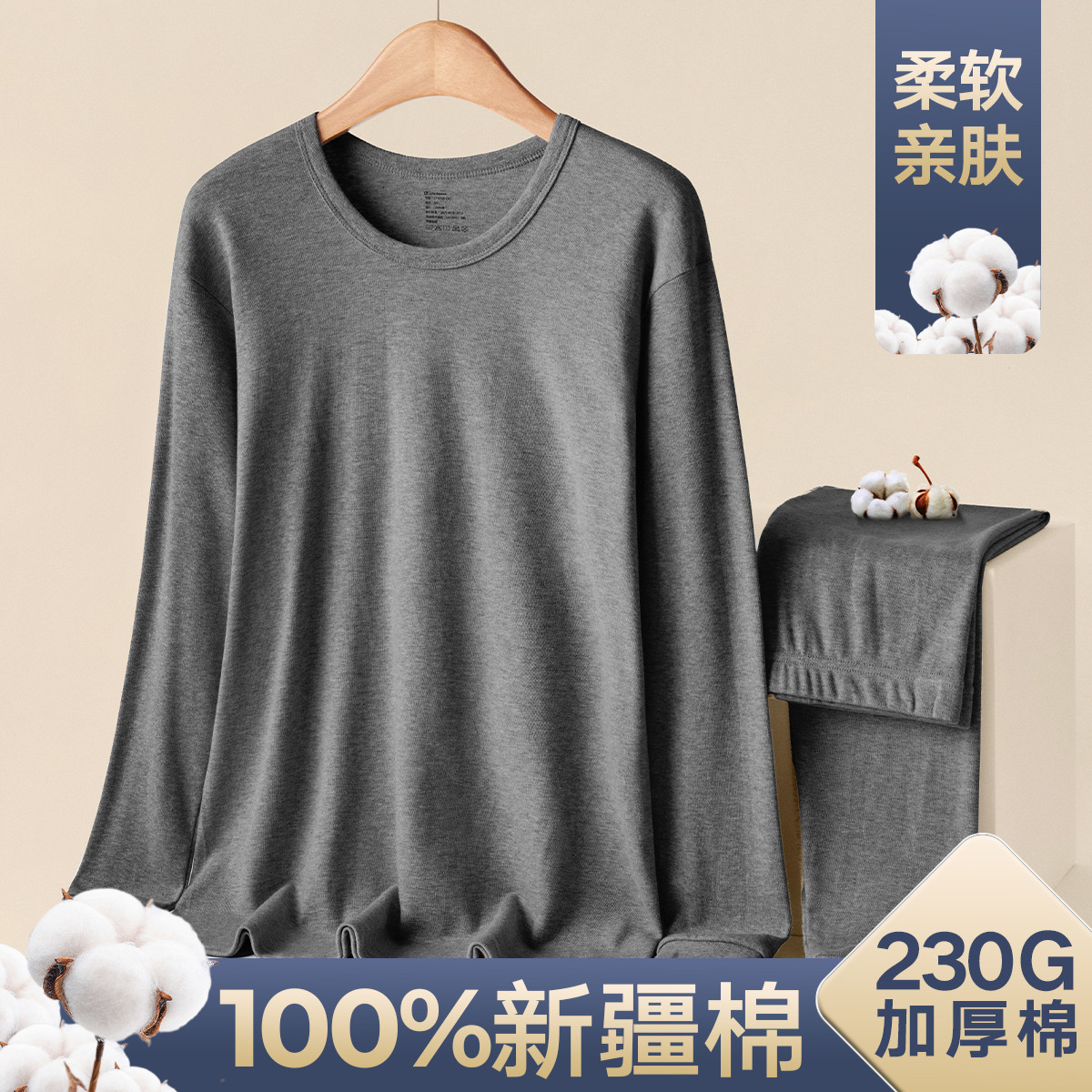 【舒柔全棉】纯棉男士秋衣秋裤男透气春秋季男士圆领保暖内衣套装 068122
