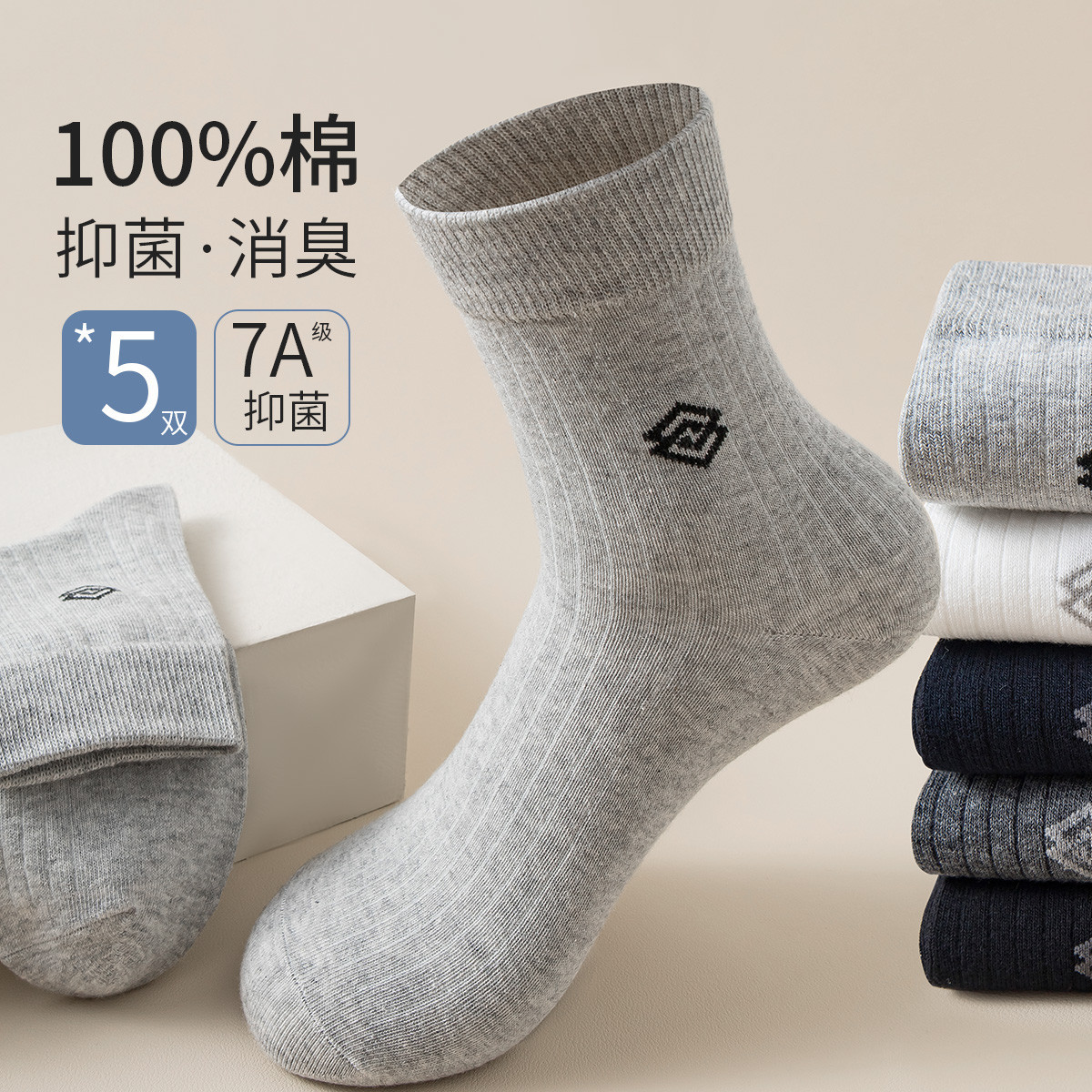 5双装袜子男士100%纯棉防臭抑菌中筒袜秋冬款保暖棉袜男袜 942283