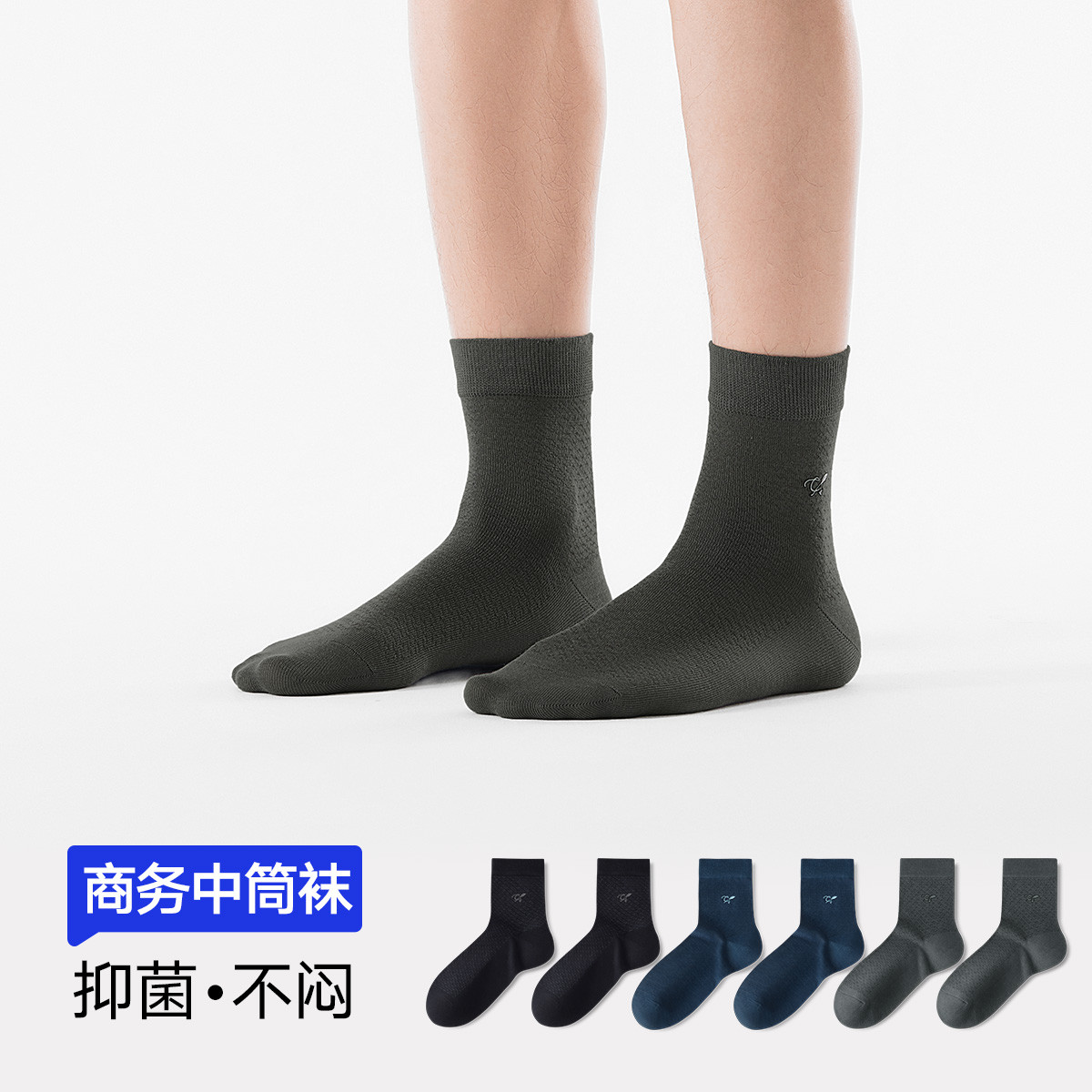 【7A抗菌消臭】6双装男士中筒袜男袜防臭透气商务休闲袜子男 100250