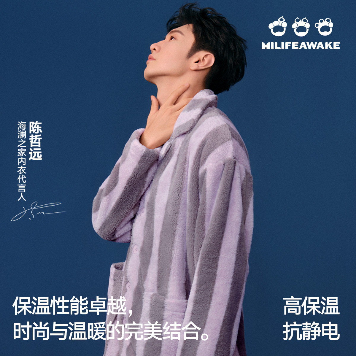 【明星陈哲远同款】秋冬情侣款抱抱绒翻领家居服套装双面绒抗静电 375898