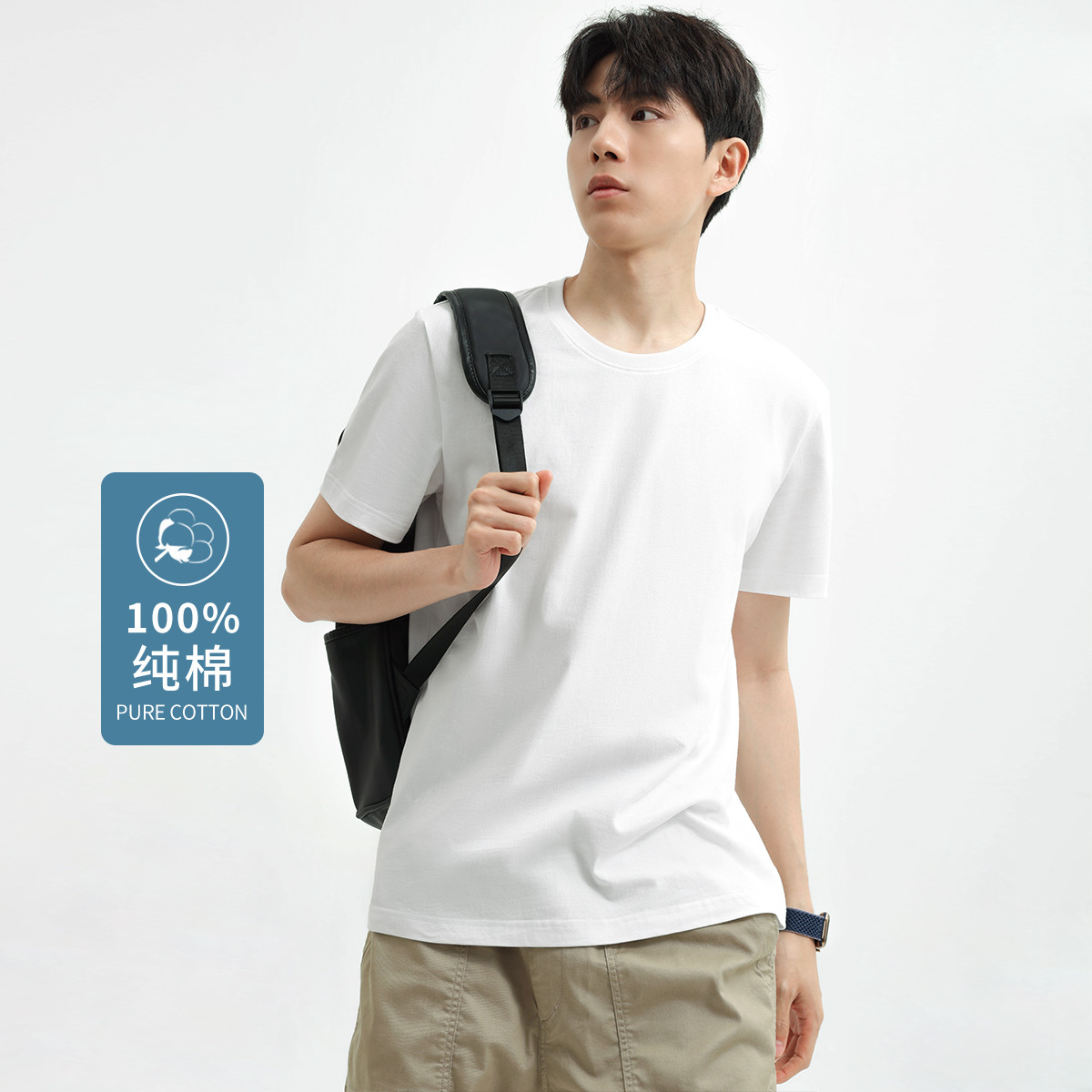 【100%棉】经典纯色简约圆领短袖打底T恤男士夏季舒适透气 467595