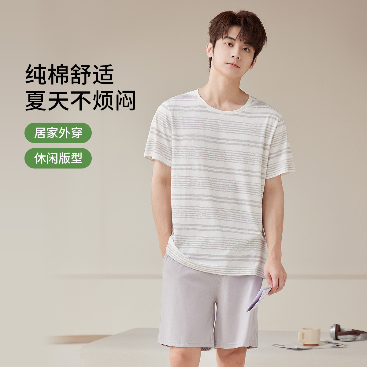 【100%棉】可外穿短袖短裤睡衣男士夏季舒适纯棉家居服套装 402507