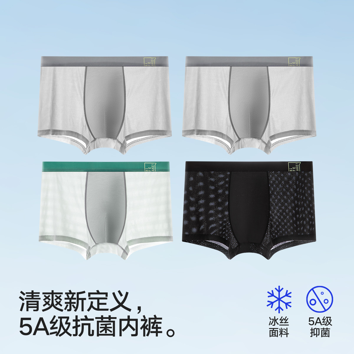 【5A抑菌裆】3条装男士冰丝内裤无痕透气夏季薄款平角四角短裤 164634