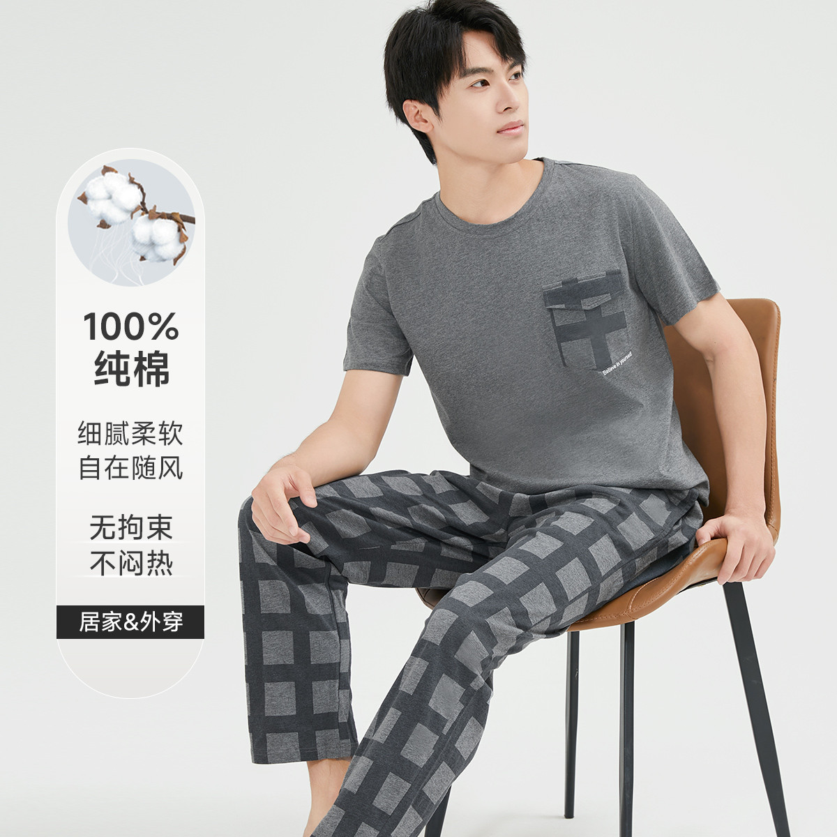 【100%棉】男士睡衣夏季亲肤纯棉家居服两件套休闲全棉套装男 807115