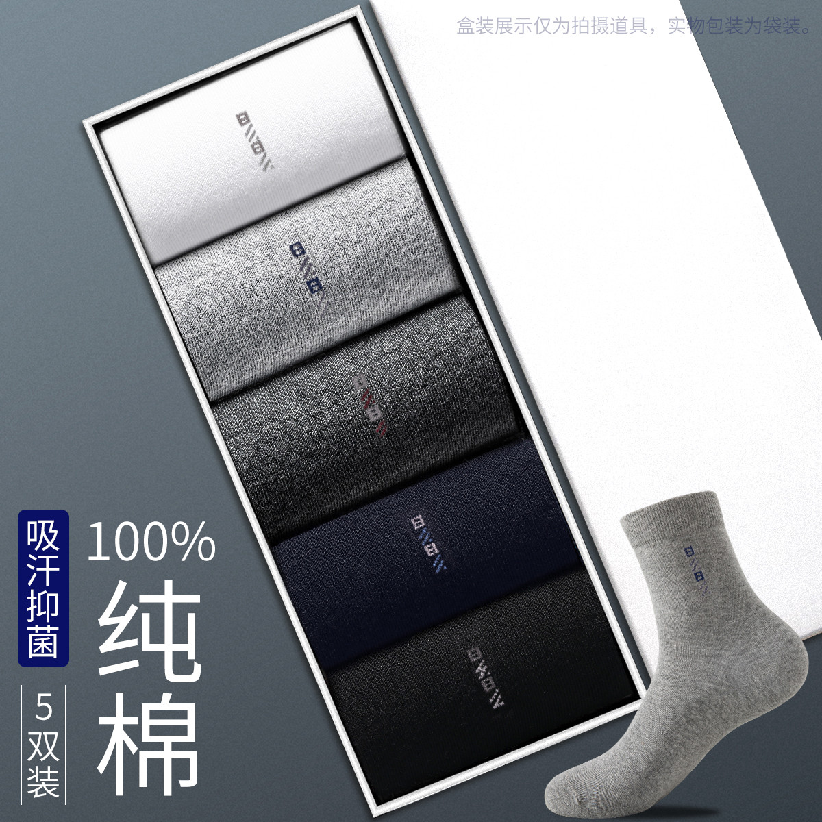 【100%纯棉抑菌】5双秋冬款男袜商务中筒袜子透气男士袜子 097355