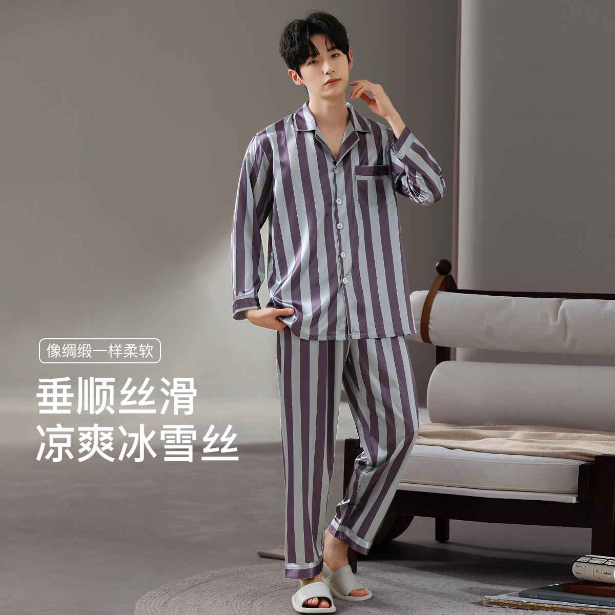【丝滑亲肤】男士春夏高级感冰丝睡衣长袖套装家居服薄男式居家服 649931