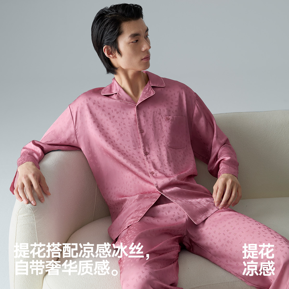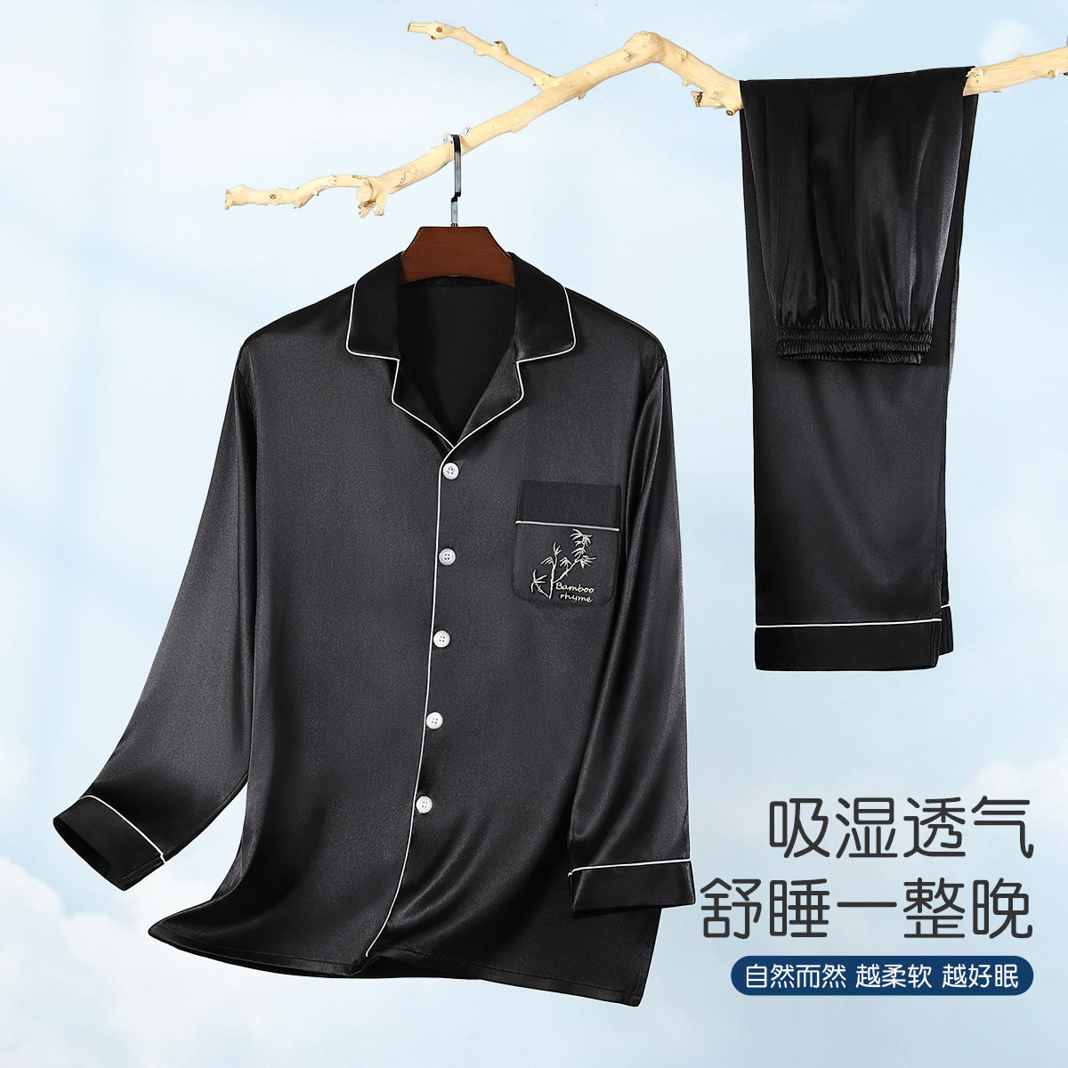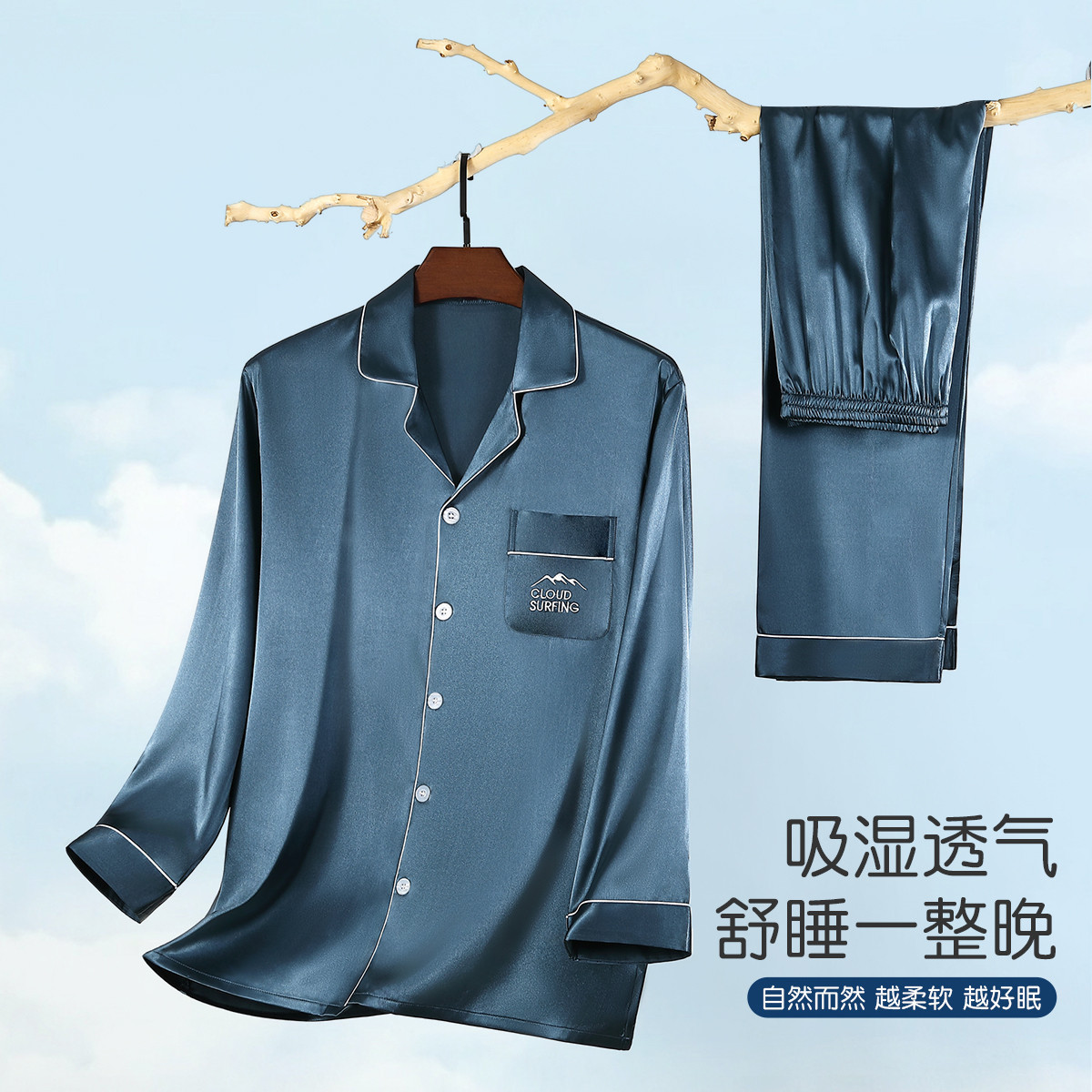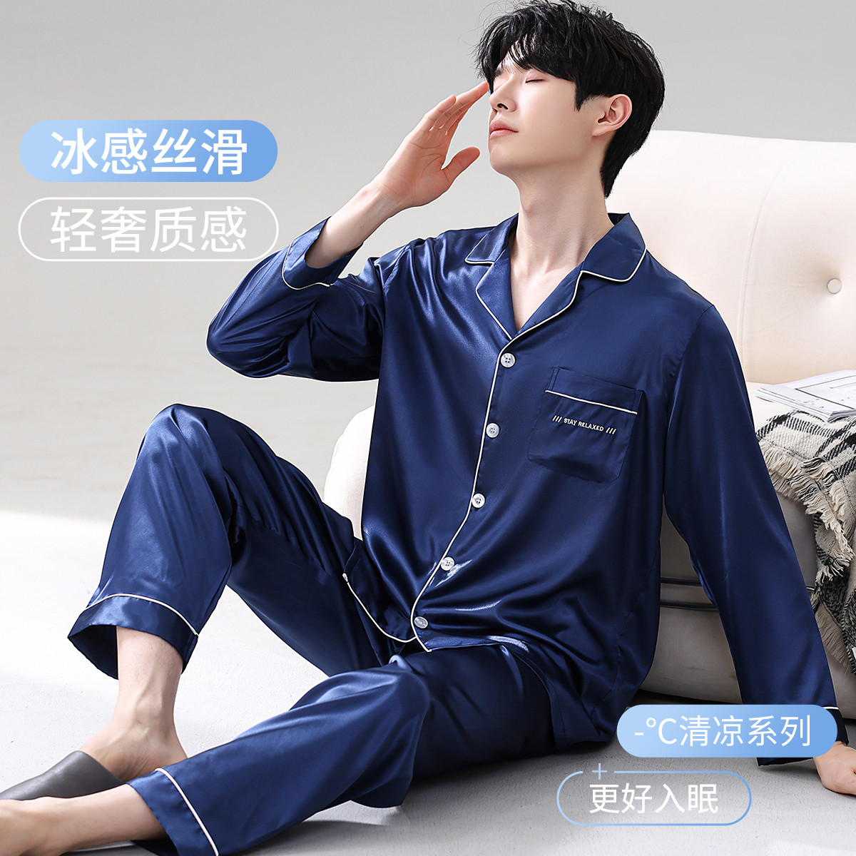【丝滑亲肤】男士冰丝睡衣高级感可外穿春夏薄款长袖家居服套装男 355467