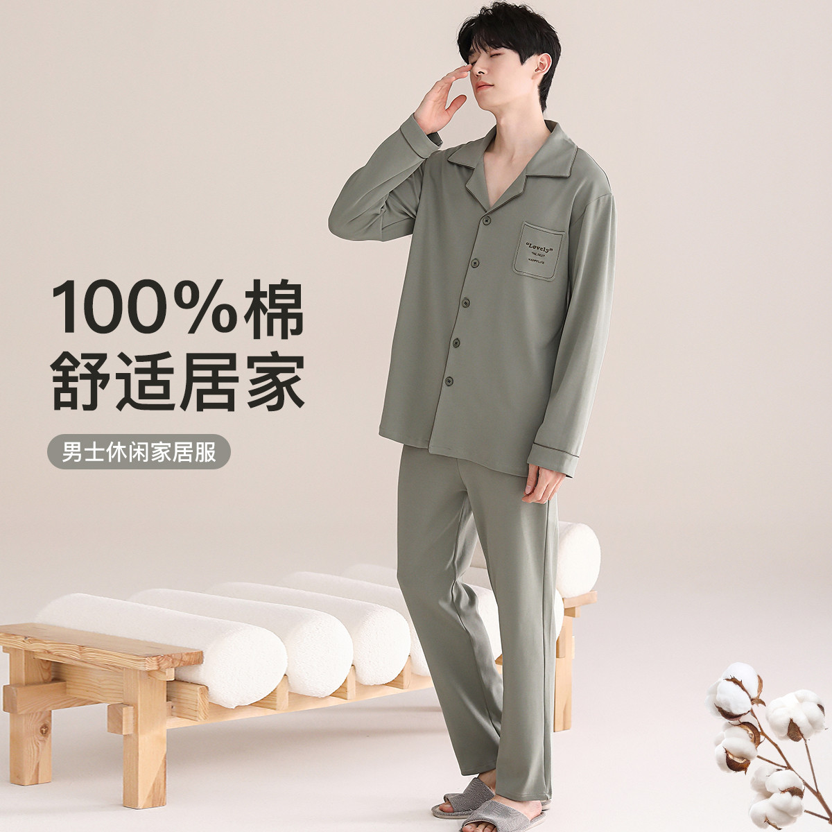 【100%纯棉 简约休闲】可外穿舒适开衫男士睡衣男士家居套装 073675
