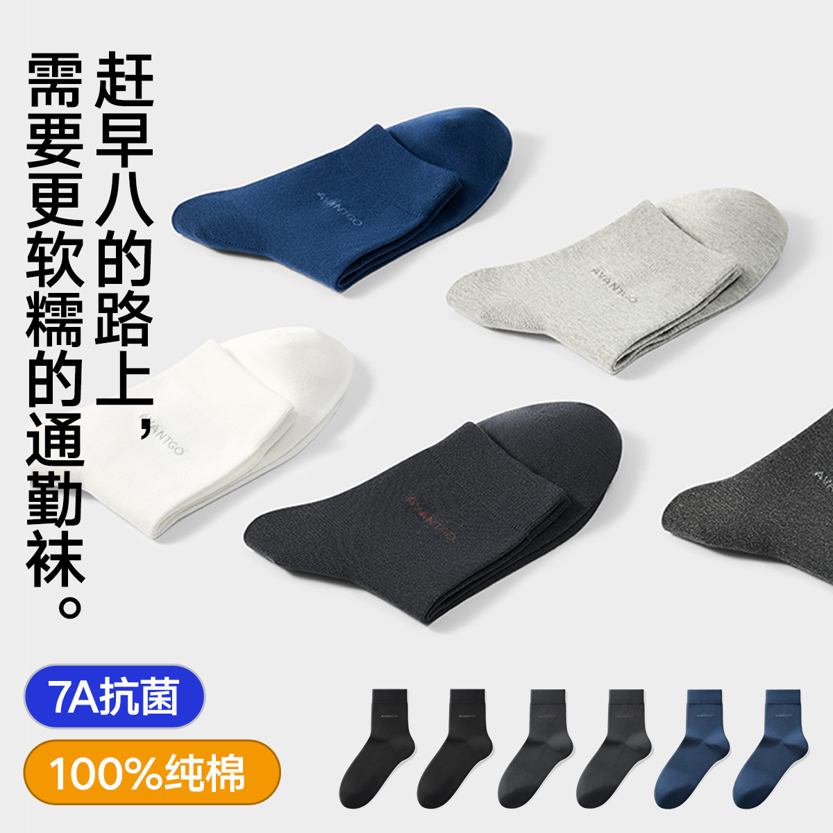 【7A抑菌 100%纯棉】6双装男士中筒袜商务休闲透气男袜子 864090