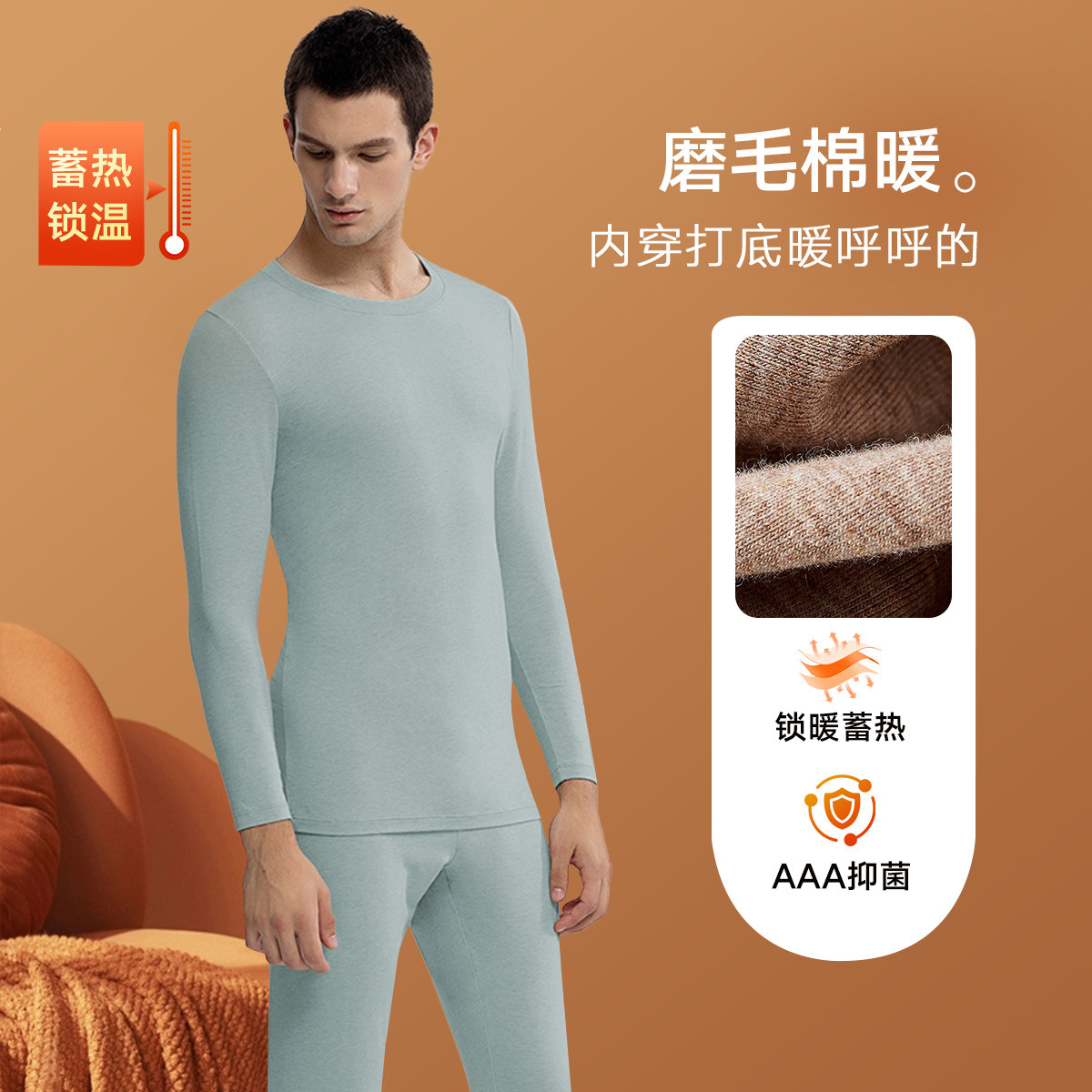 【加厚双面磨绒 蚕丝贴片】秋冬男士圆领保暖内衣秋衣秋裤套装男 308378