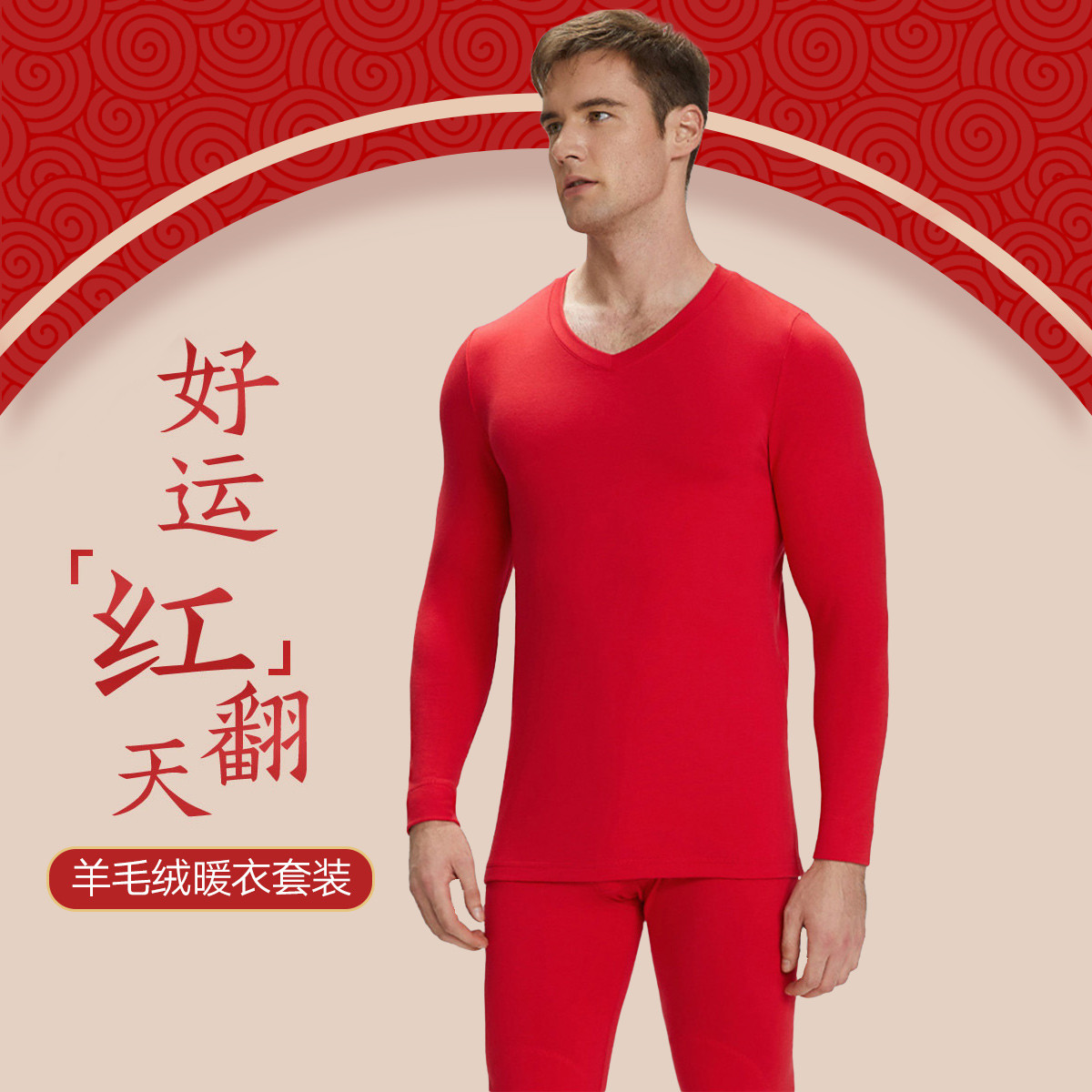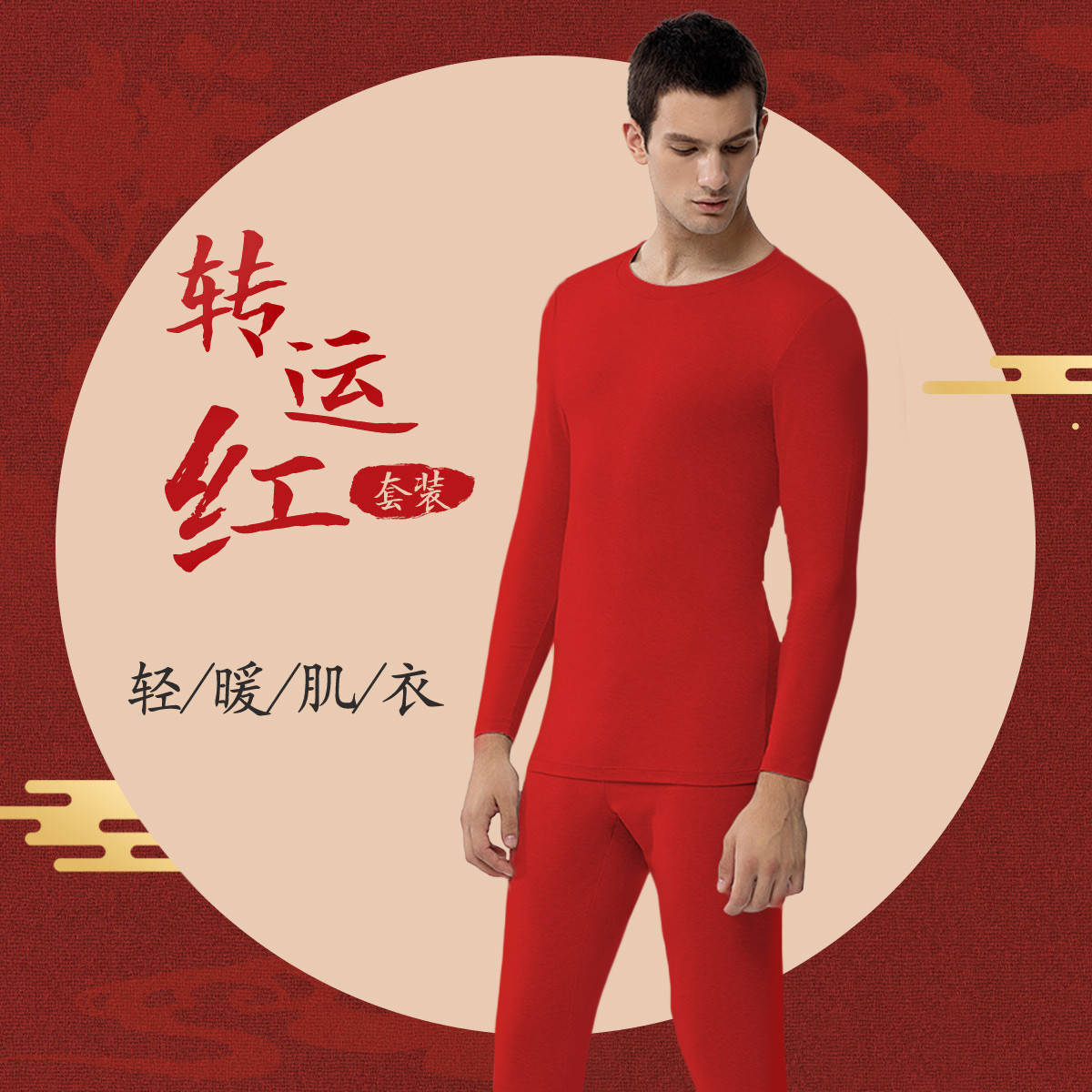 【抑菌倍暖秋衣秋裤套装】轻柔无痕红内衣暖衣暖裤内衣套装睡衣男 908763