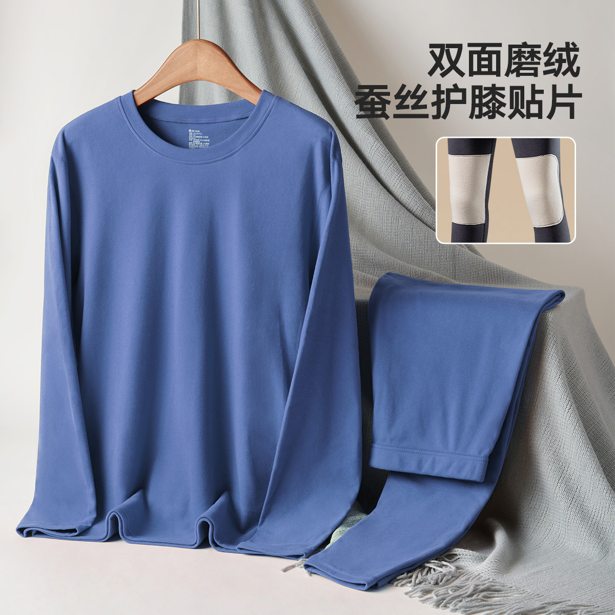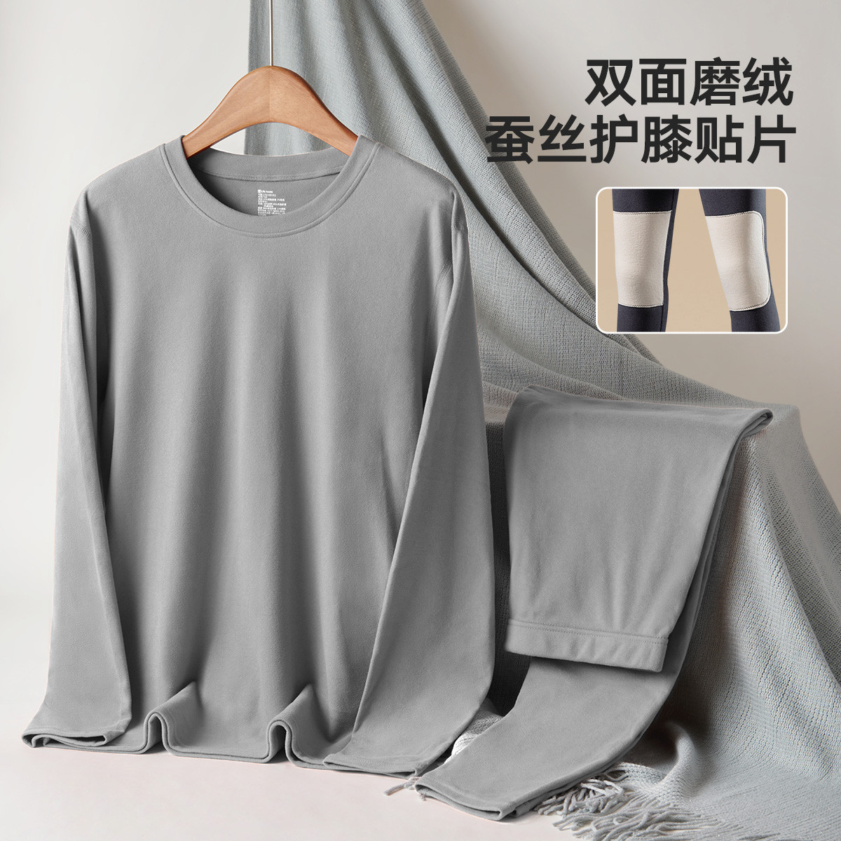 【加厚双面磨绒 蚕丝贴片】秋冬男士圆领保暖内衣秋衣秋裤套装男 699994