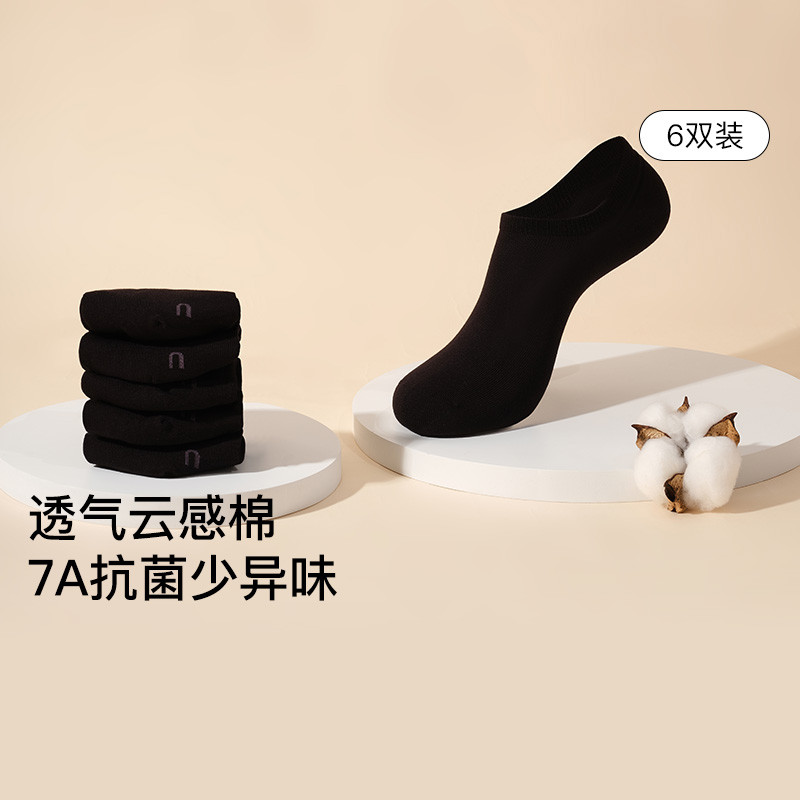 【7A抗菌】防臭透气男士船袜不掉跟防滑舒适袜子6双装夏季薄款 733952