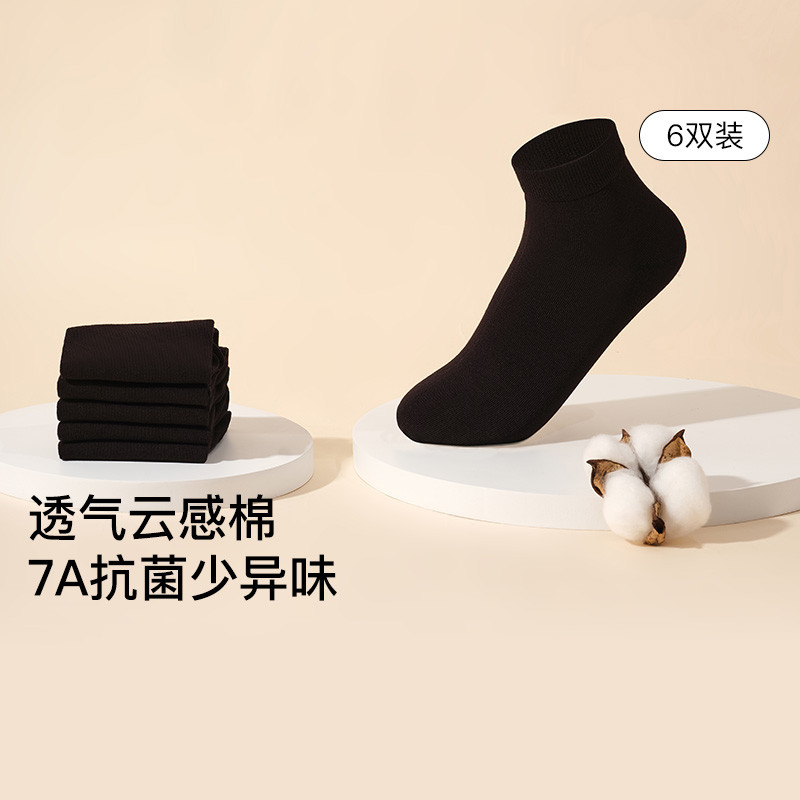 【7A抗菌】6双装防臭透气短袜耐磨不起球薄款袜子男款夏季 836352