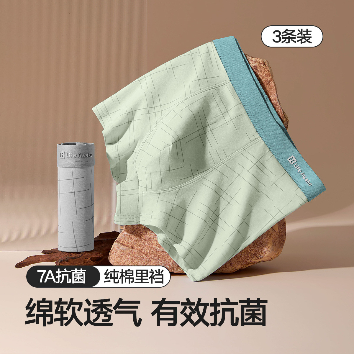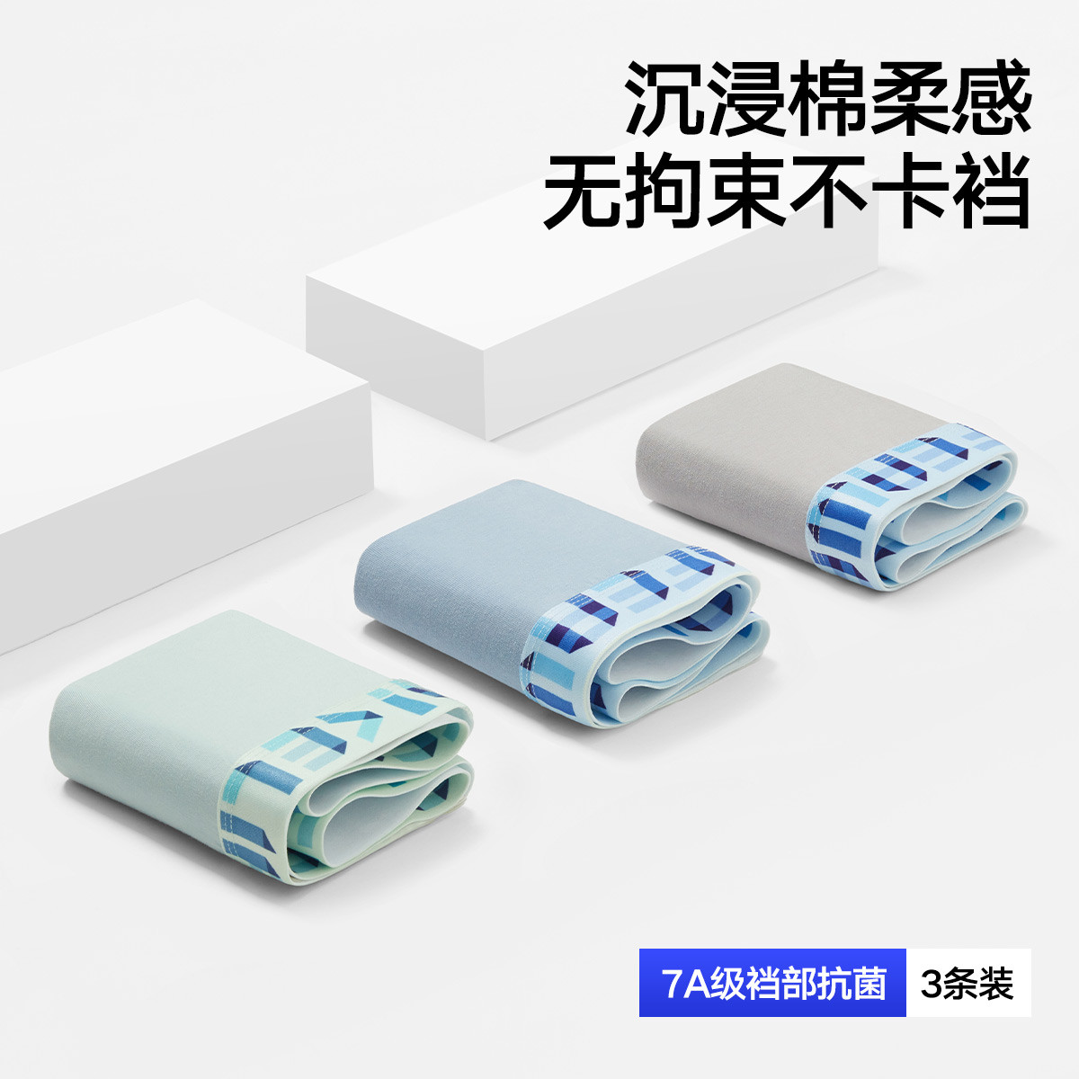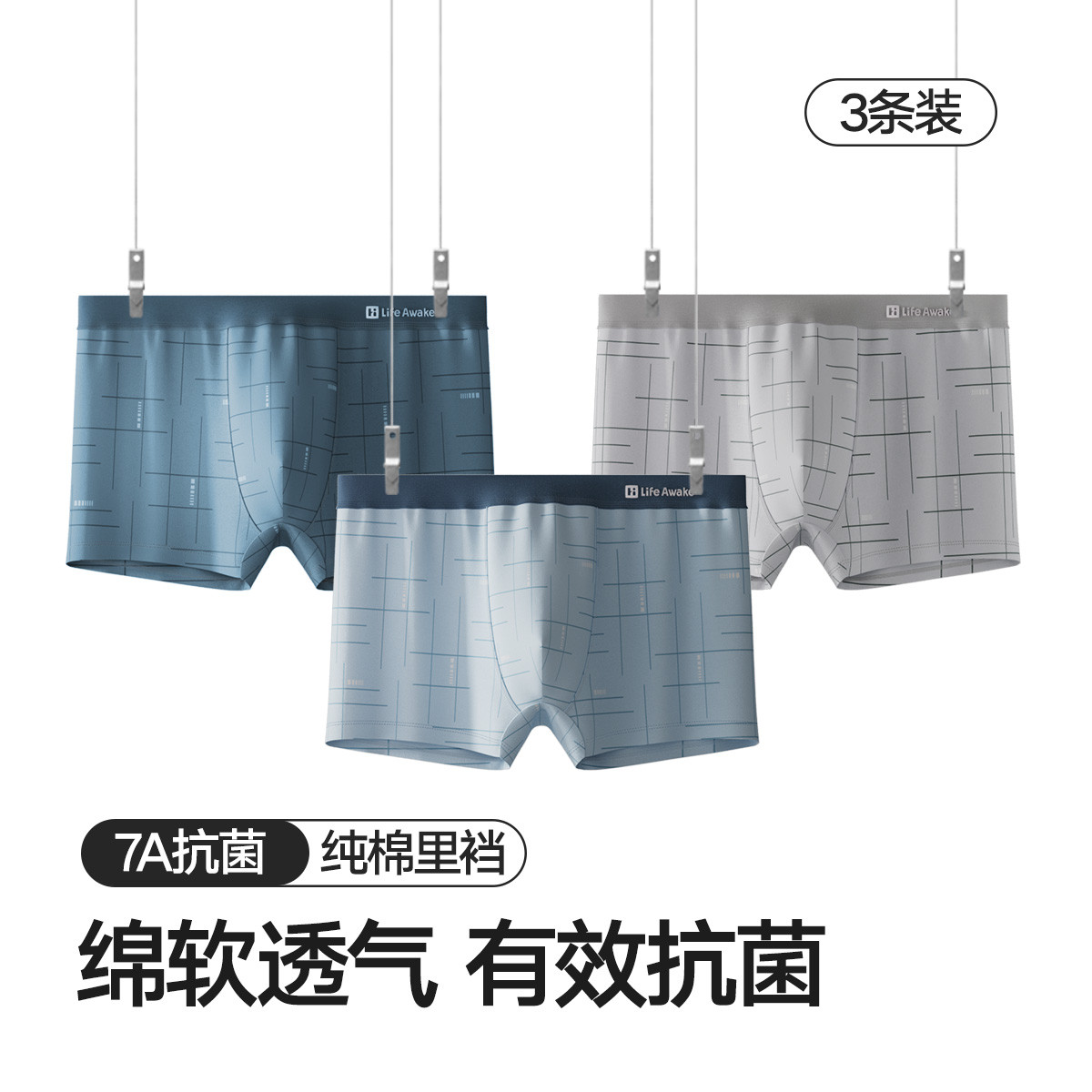 【7A抑菌 100%纯棉档】3条装男士平角内裤透气四角短裤男 221466