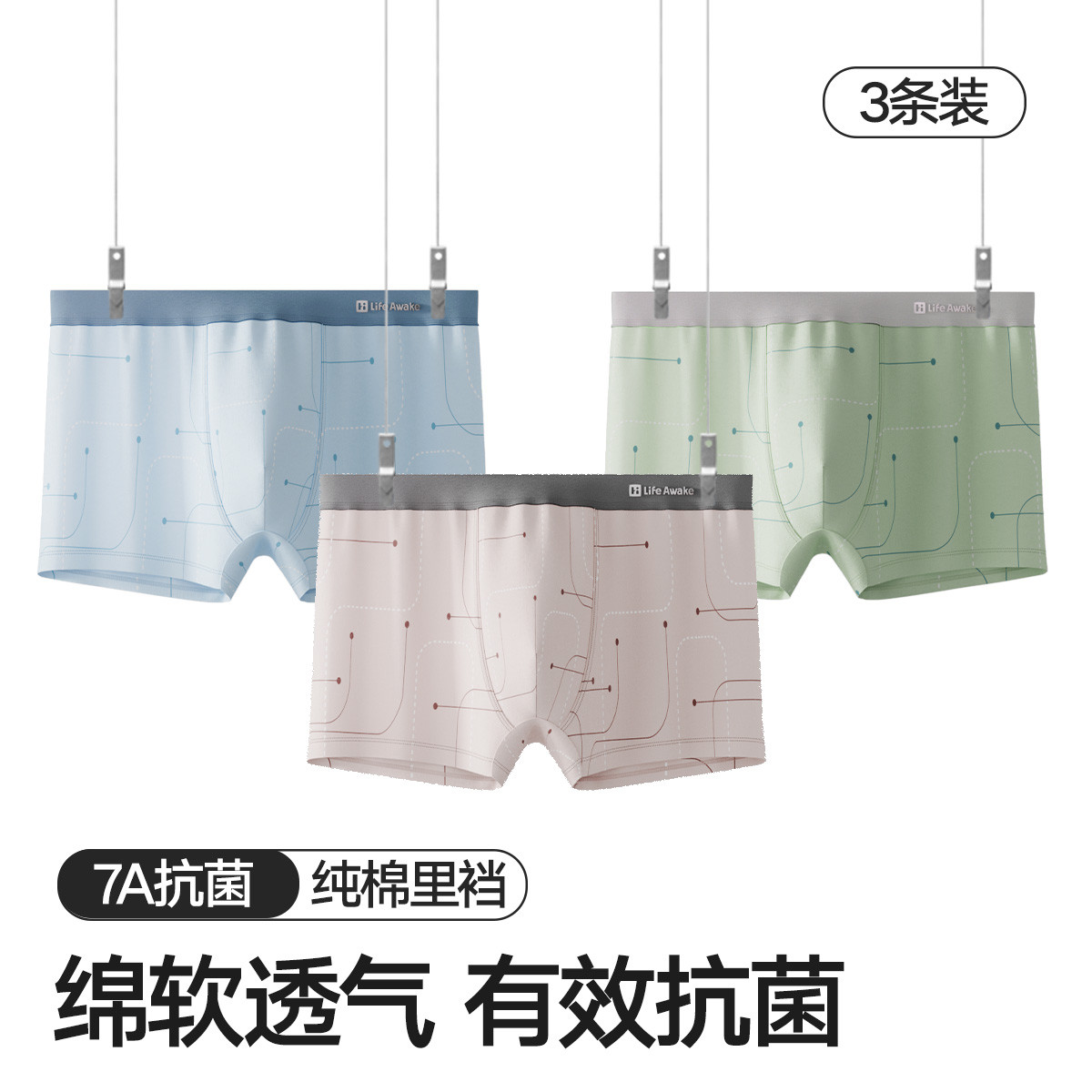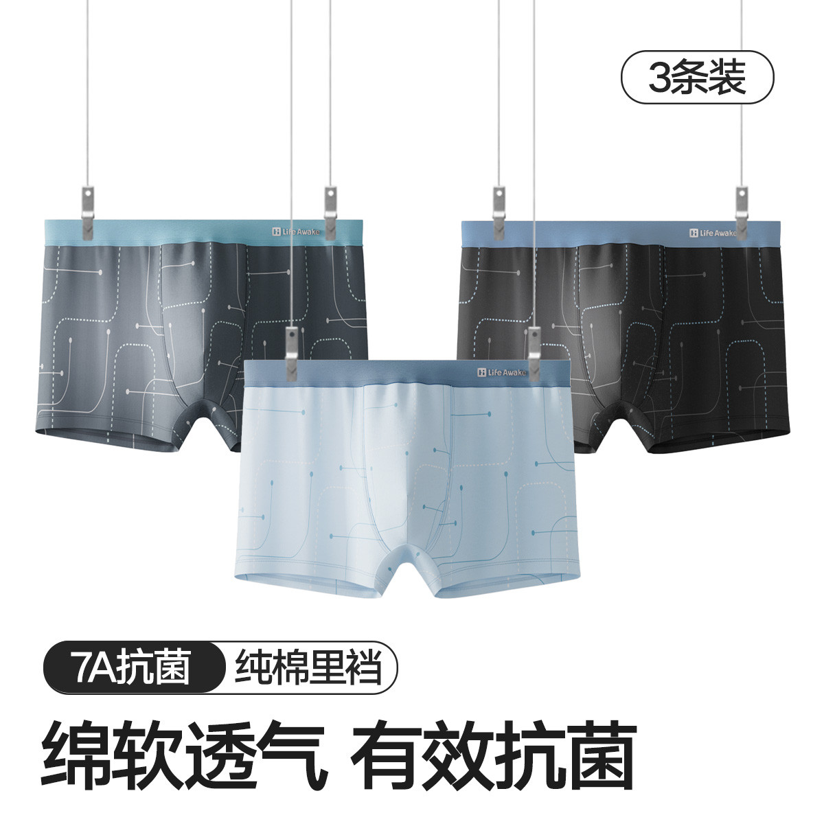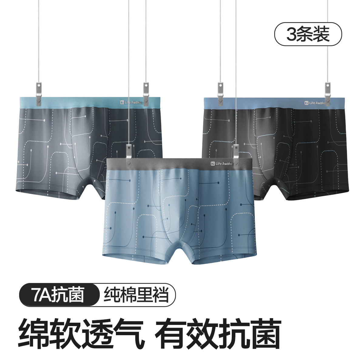 【7A抑菌 100%纯棉档】3条装男士印花平角内裤透气短裤男 382682