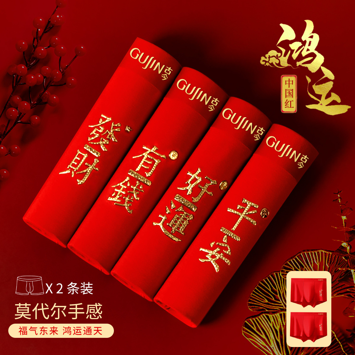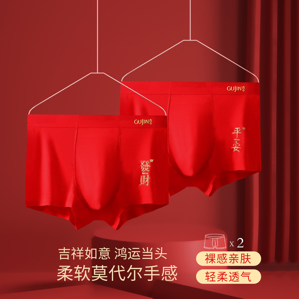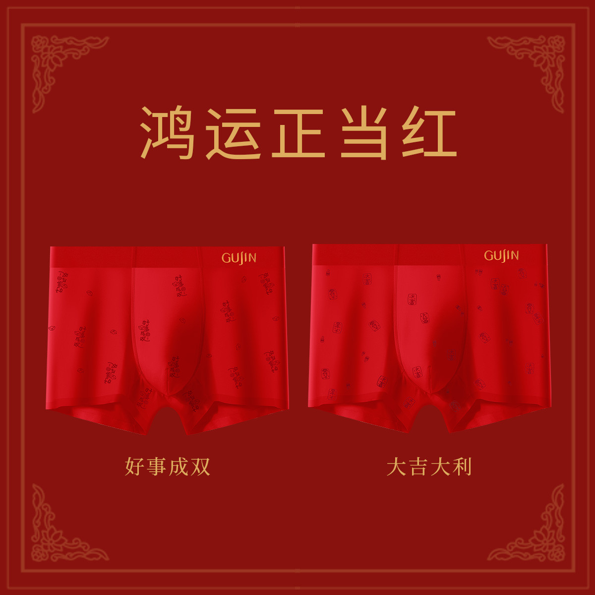 【喜庆鸿运】本命蛇年男士内裤春秋款无痕亲肤平角裤大红色内裤 870475