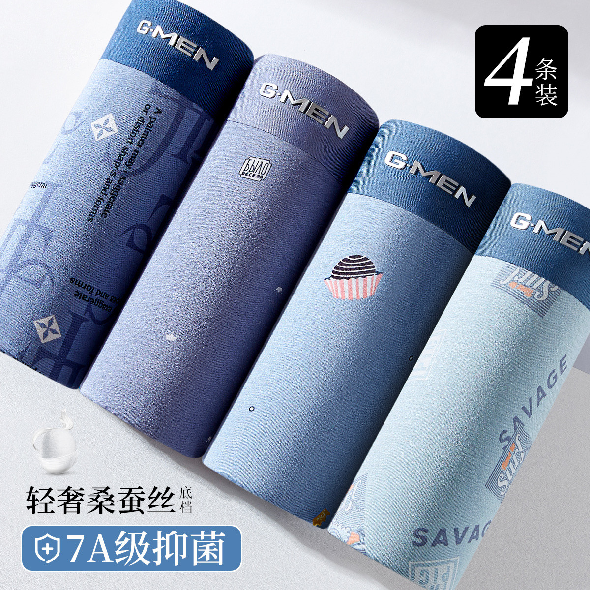 【三体联名 含桑蚕丝10A抑菌裆】4条装男士平角内裤四角短裤 023578