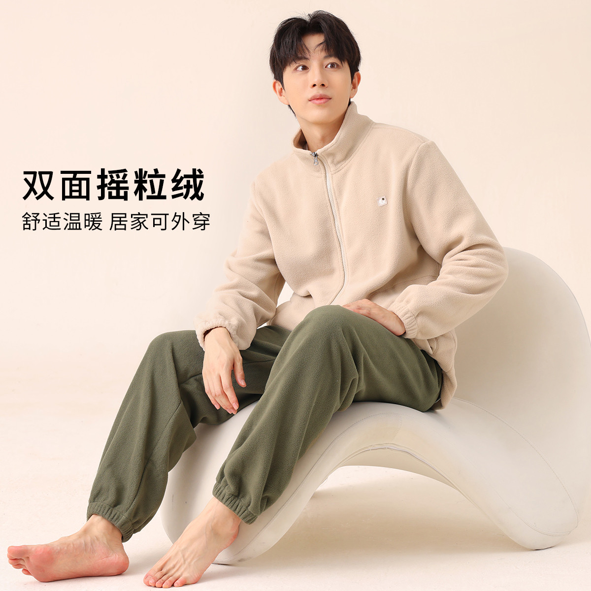 【加绒厚款双面摇粒绒】简约立领舒适百搭可外穿秋冬款男士家居服 184779
