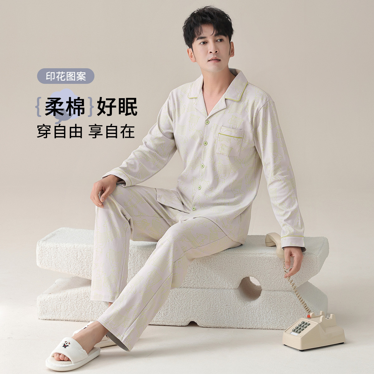 【100%纯棉】男士家居服套装透气长袖长裤可外穿高级感睡衣男 999066