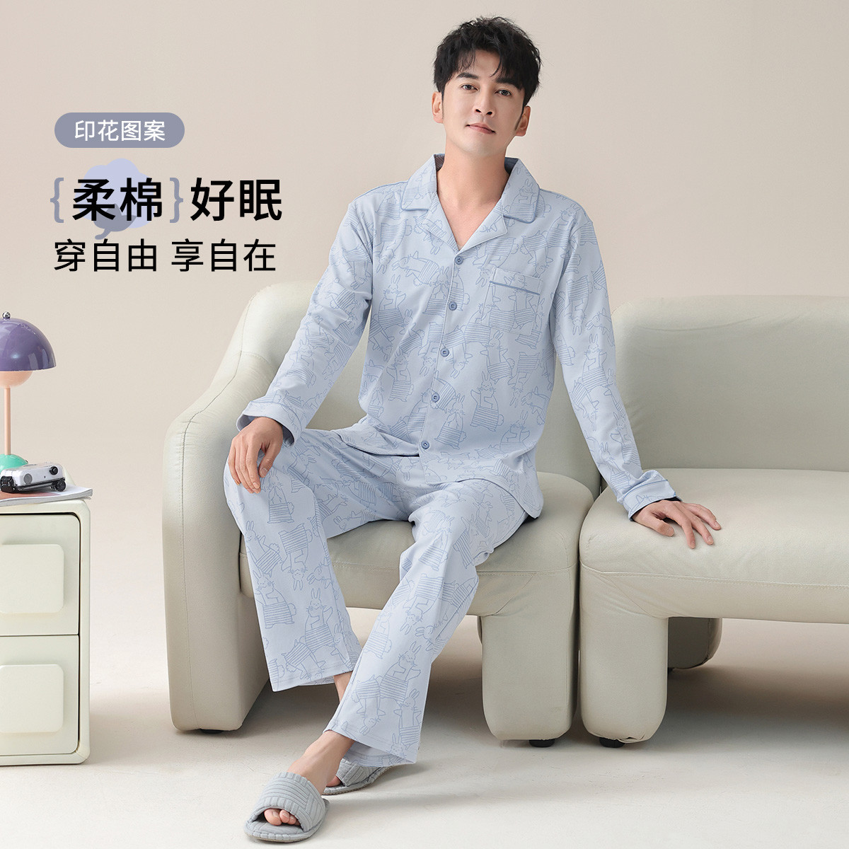 【柔软亲肤】春秋男士睡衣男长袖休闲家居服套装高级感可外穿男款 968218