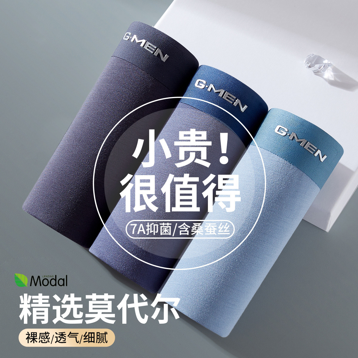 莫代尔无痕运动透气抑菌四角含桑蚕丝底档短裤古今内裤男士平角 524363