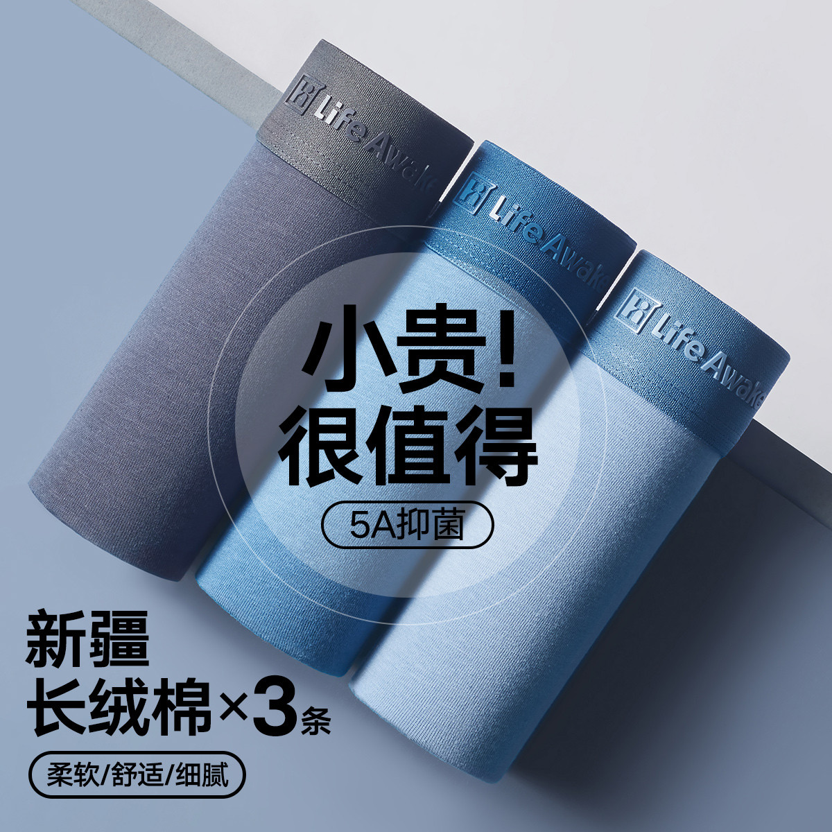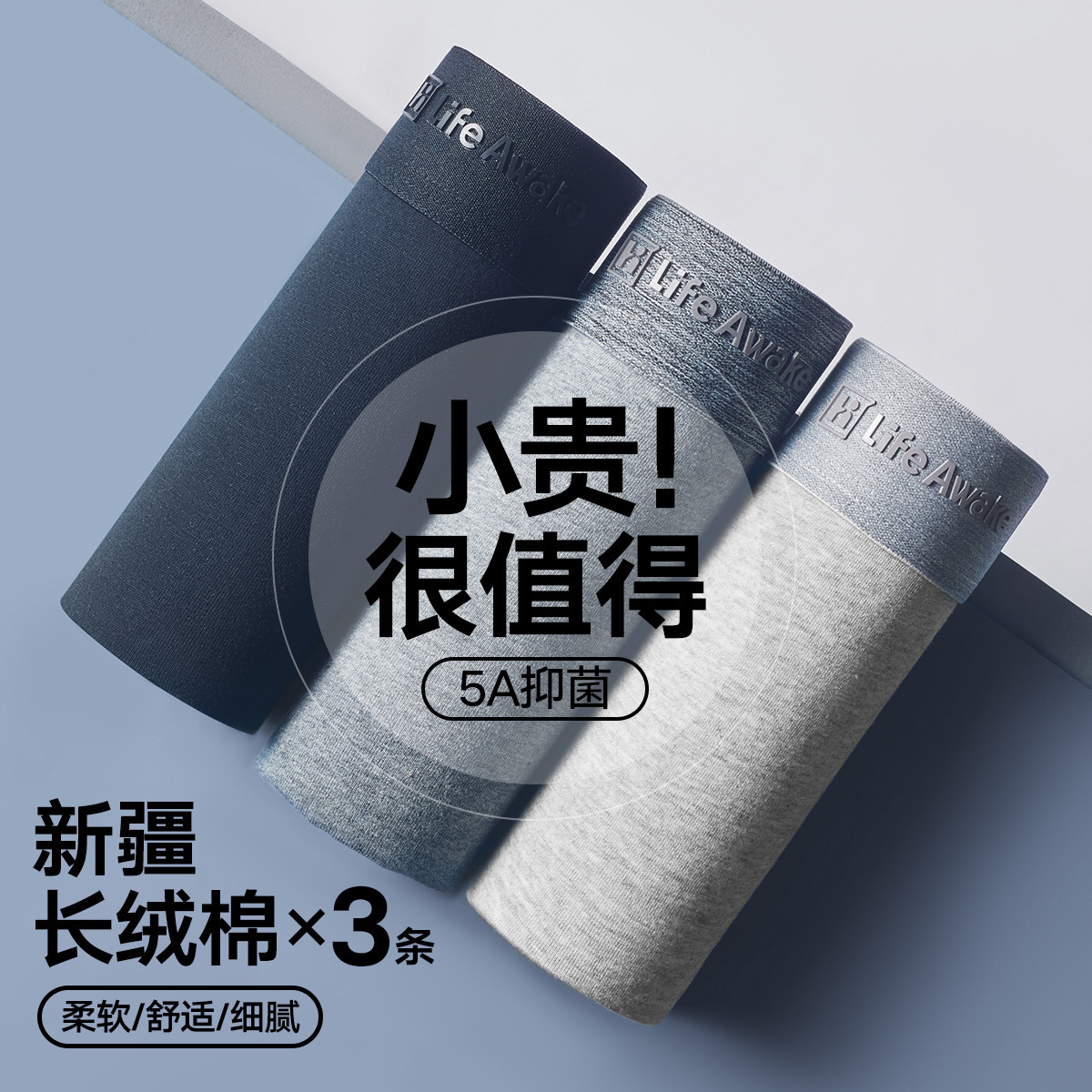 【5A抑菌 95%棉】3条装男士内裤高端轻奢平角内裤四角短裤 974108