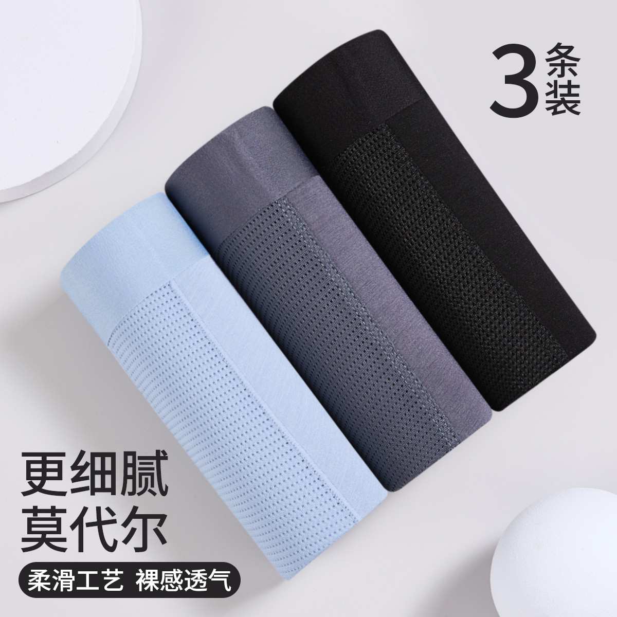 501A莫代尔男士抗菌无痕凉感夏季3件装透气平角裤运动舒适 632133