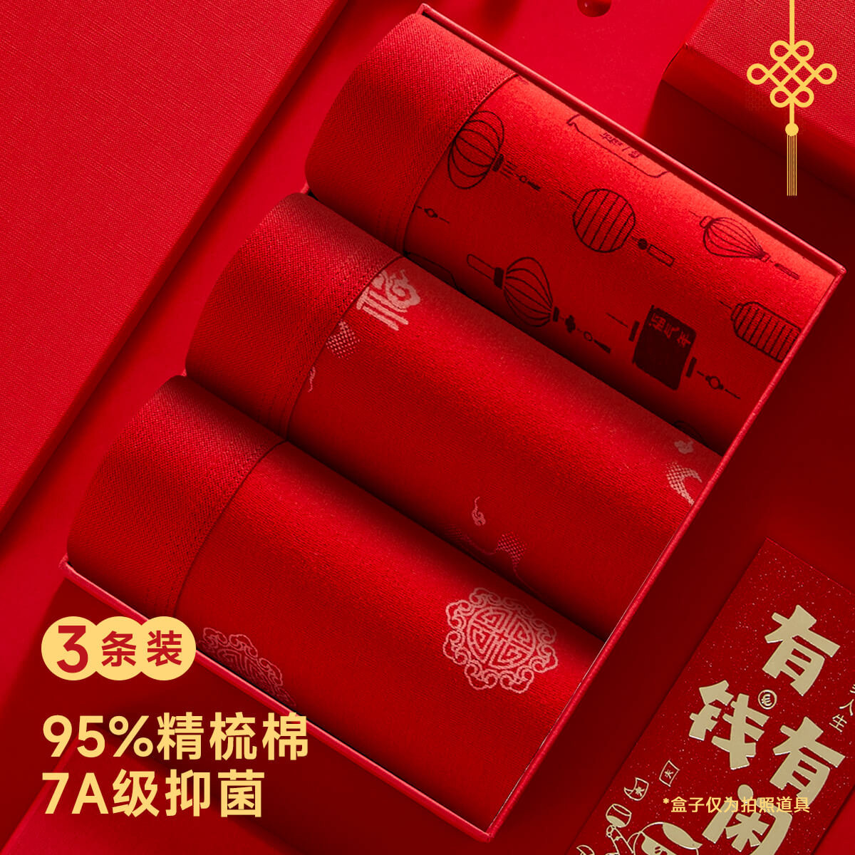 【新疆棉7A抑菌裆】本命男士内裤男100纯棉裆亲肤平角大红色 450635