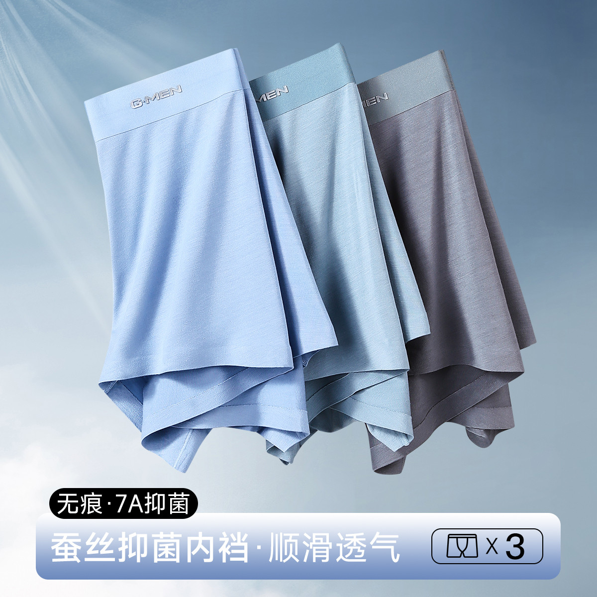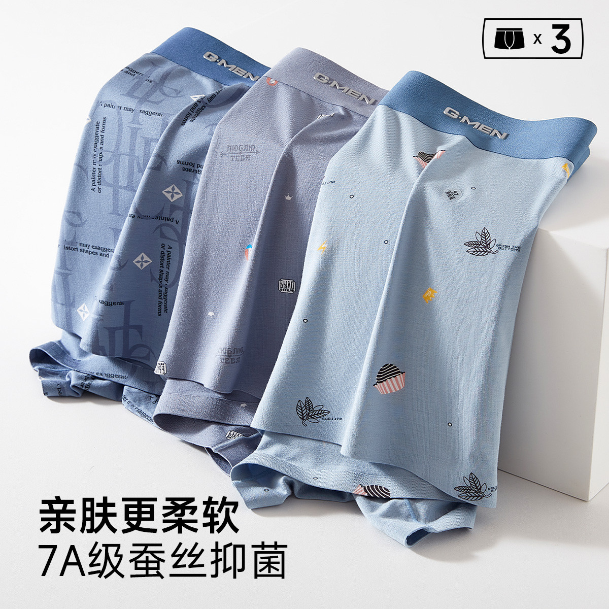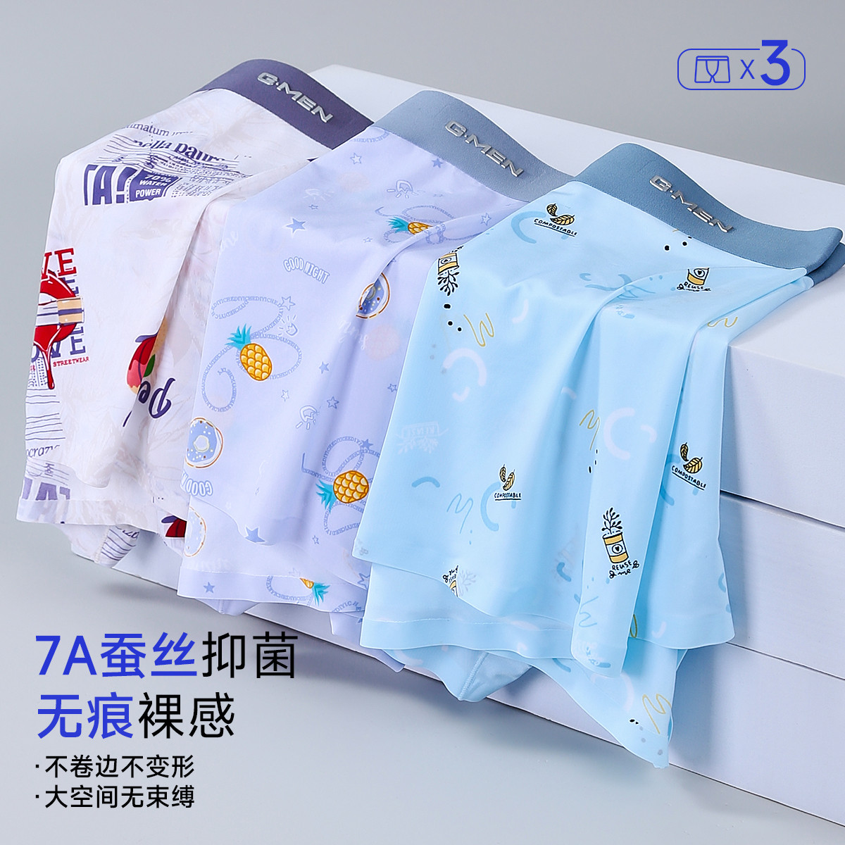 【三体联名 含桑蚕丝10A抑菌裆】4条装男士平角内裤四角短裤 023578