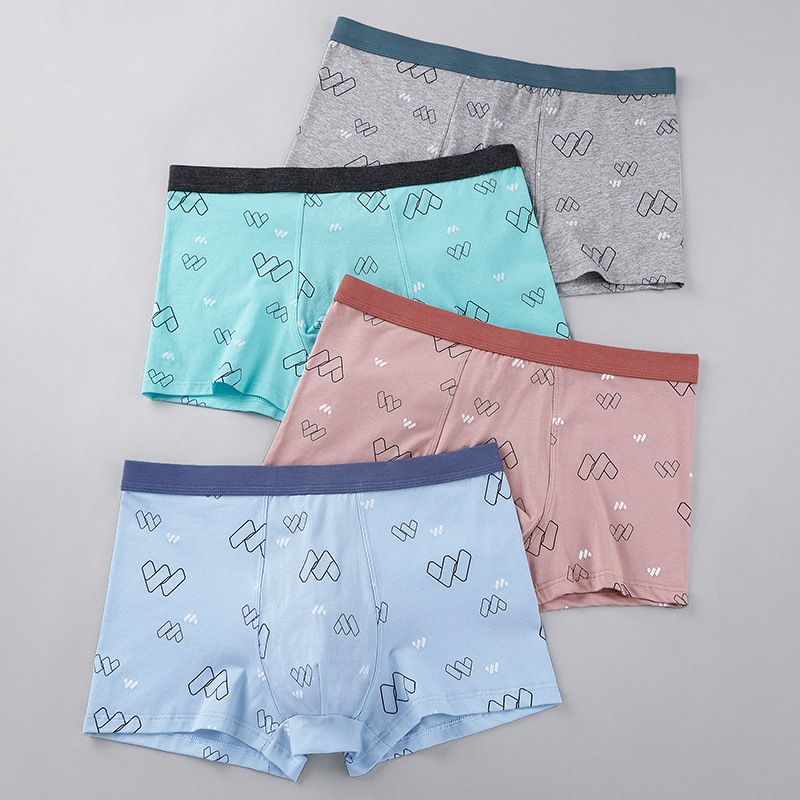 意达鸟3条装印花纯棉男士印花四角内裤6818颜色随机