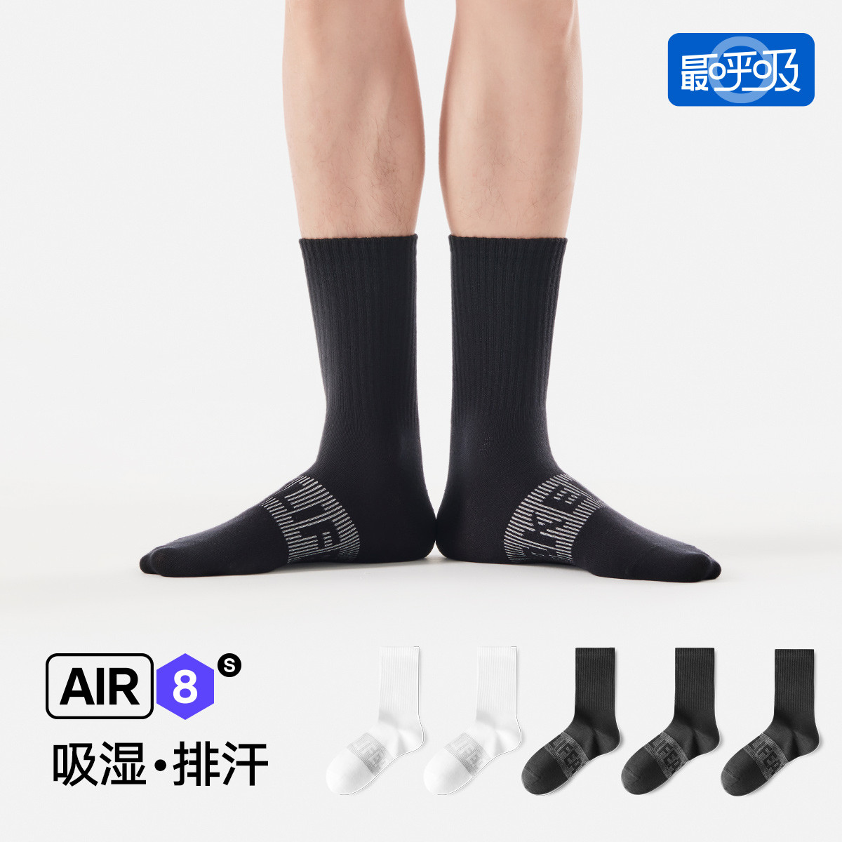 【7A抑菌防臭】5双装男士运动袜子吸汗透气跑步健身篮球中筒袜 016346