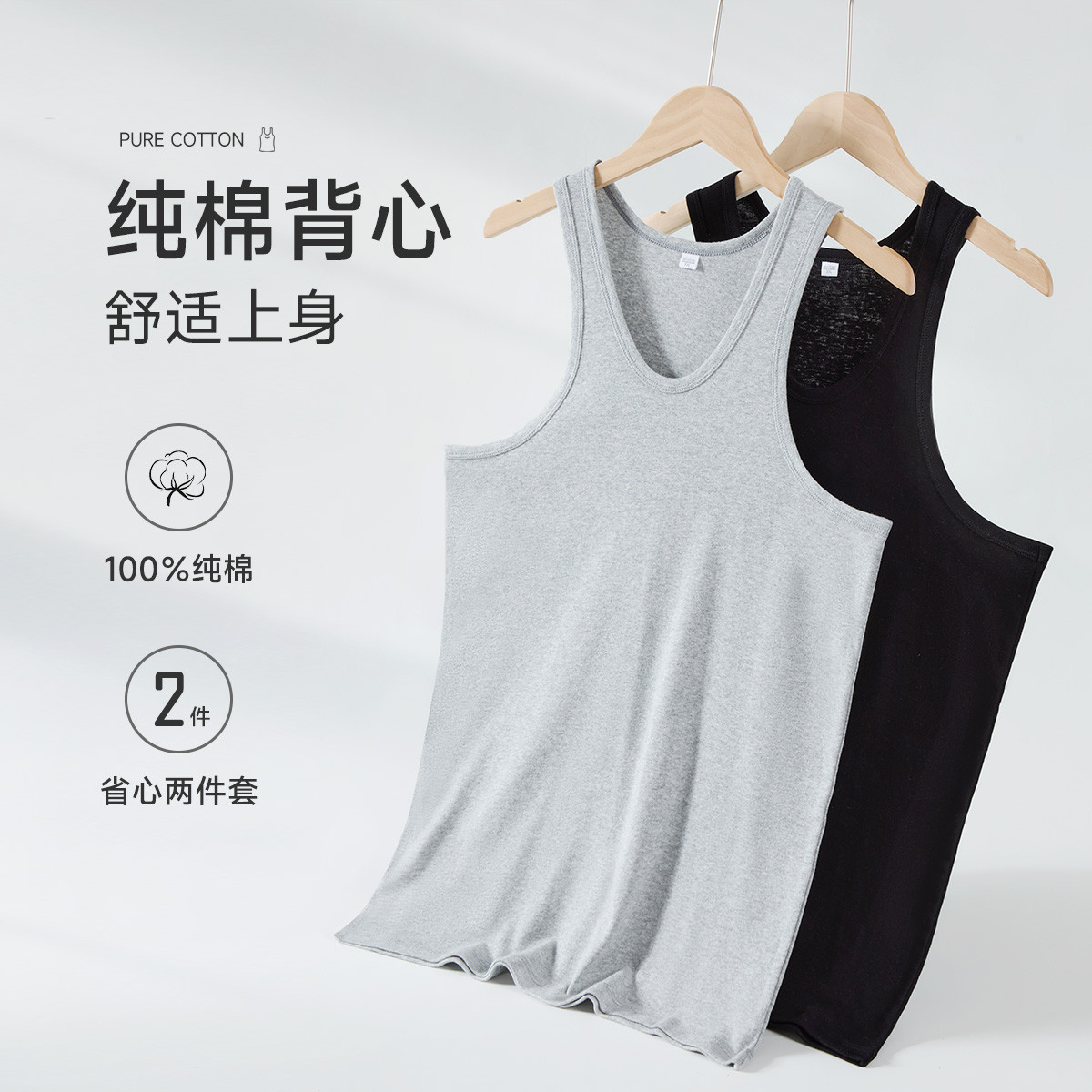 【00%纯棉】2件装男士背心全棉亲肤透气薄款打底内搭背心男 670475