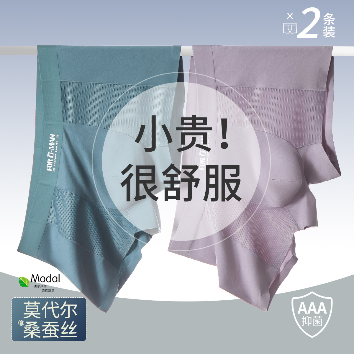 【轻奢莫代尔 抑菌桑蚕丝】裸感男士内裤男无痕透气青年平角短裤 870667