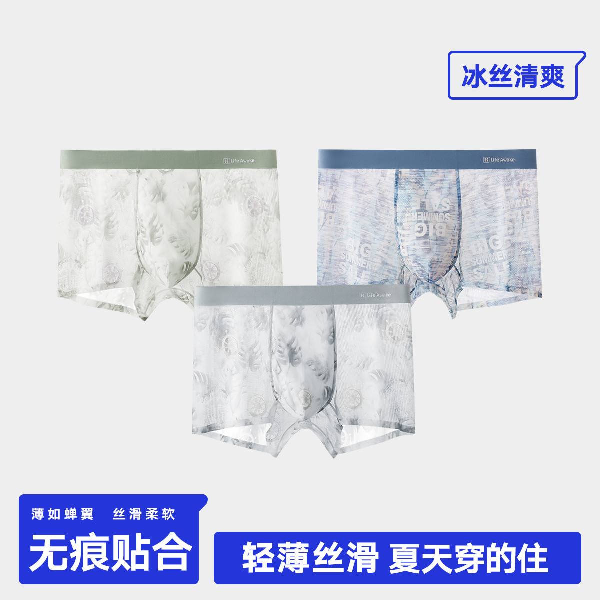 【冰丝无痕】3条装夏季男士印花内裤男凉爽轻薄网孔透气平角短裤 177946