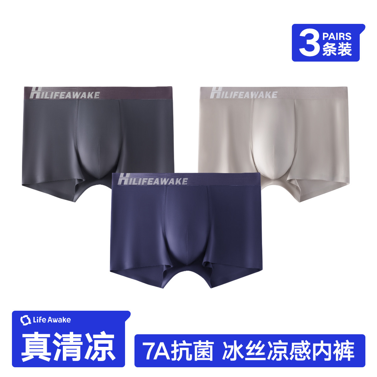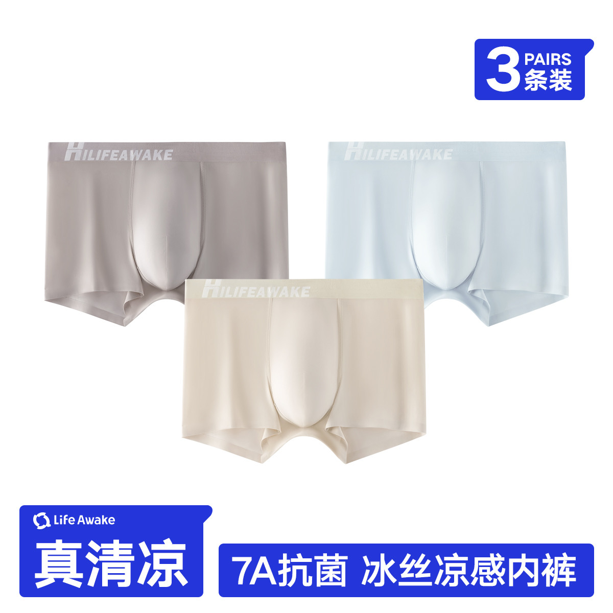 【冰丝凉感 7A抑菌消臭】3条装夏季男士超薄无痕内裤平角短裤 339354