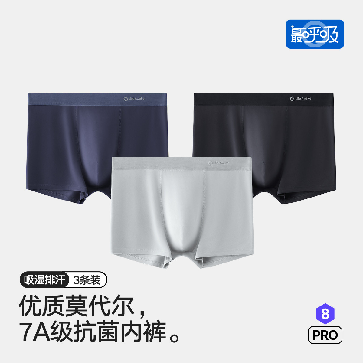 【7A抑菌裆 吸湿排汗】3条装男士内裤速干透气平角裤四角短裤 361434