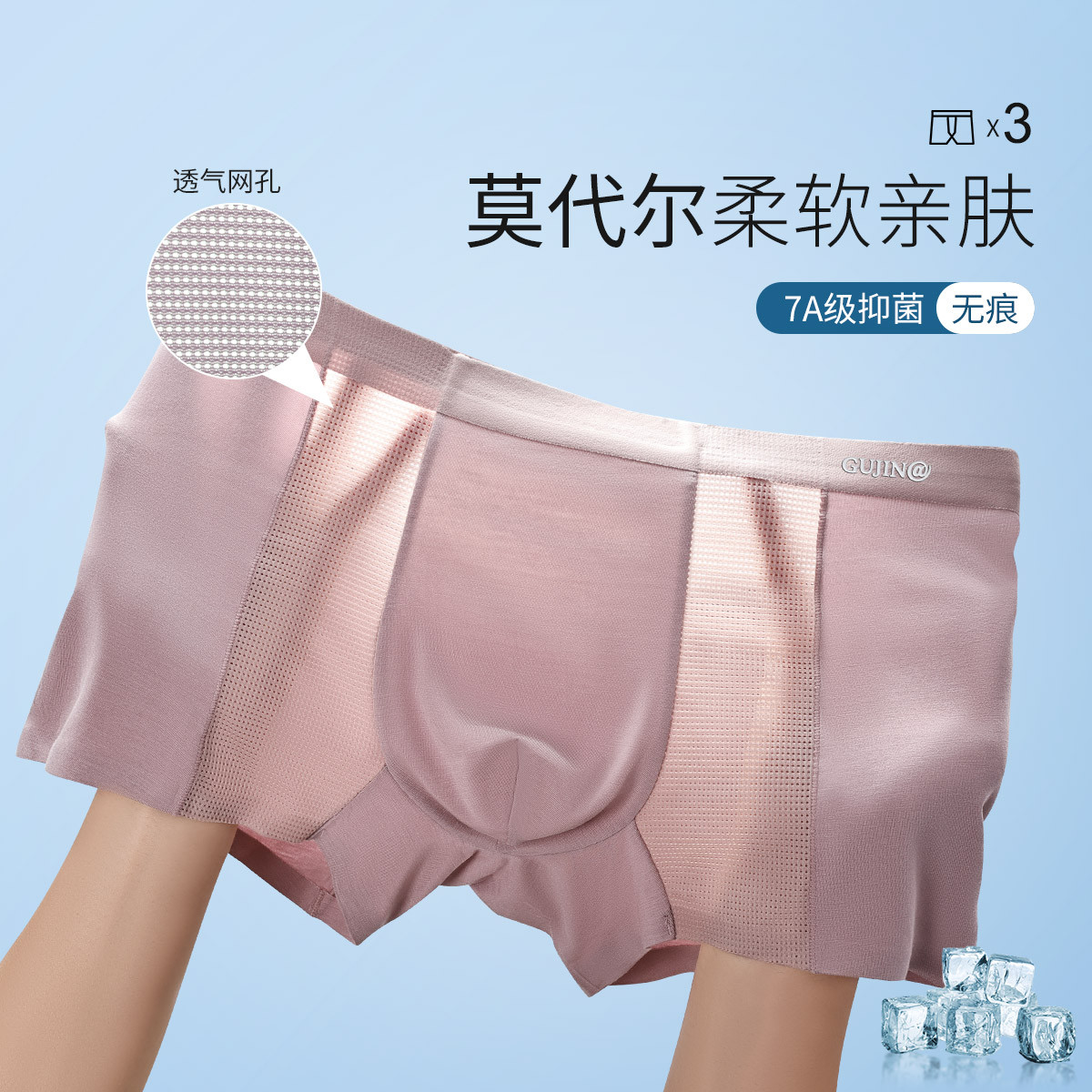 501A莫代尔男士抗菌无痕凉感夏季3件装透气平角裤运动舒适 632133